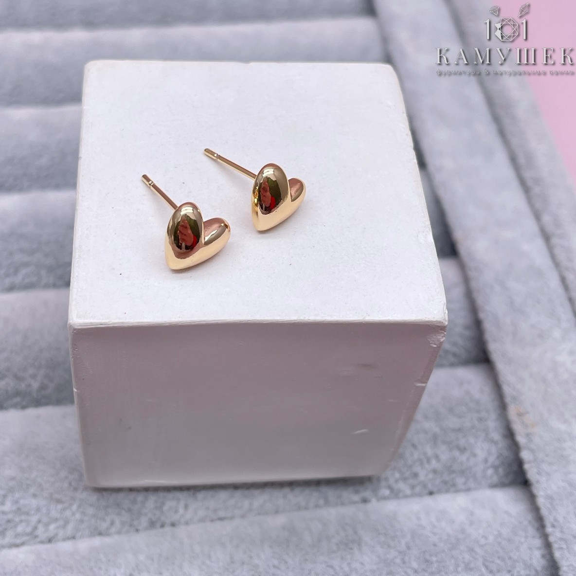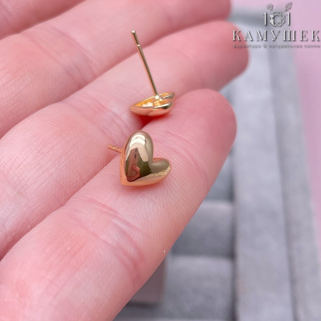 Пусеты сердце гладкое, цвет золото 7,5х8 мм