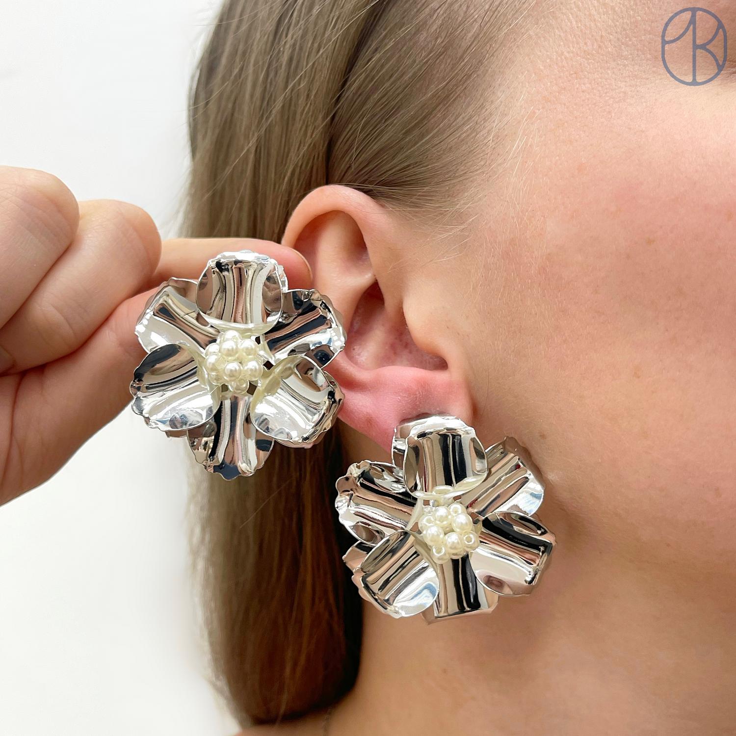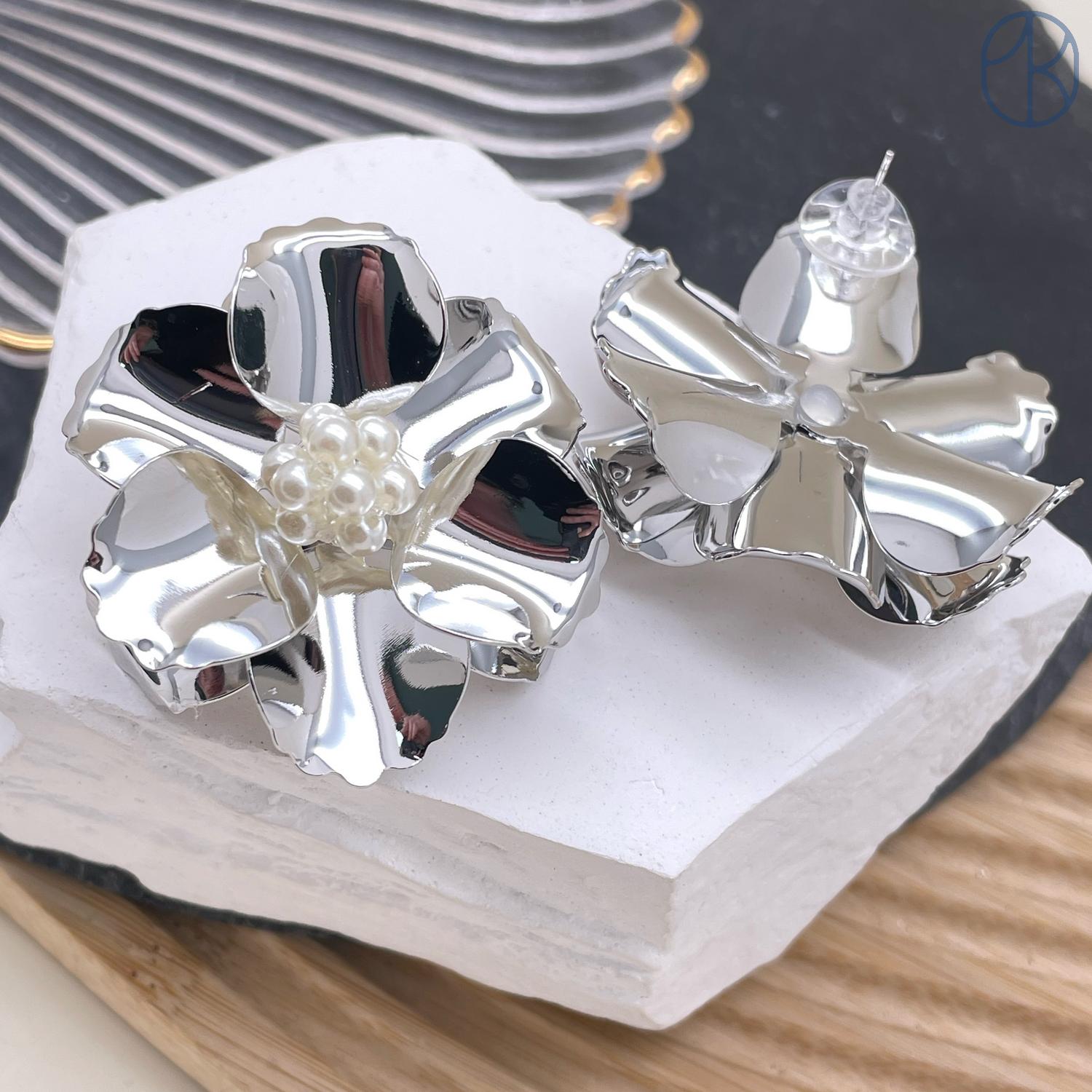 Пусеты цвет серебро 36х41 мм