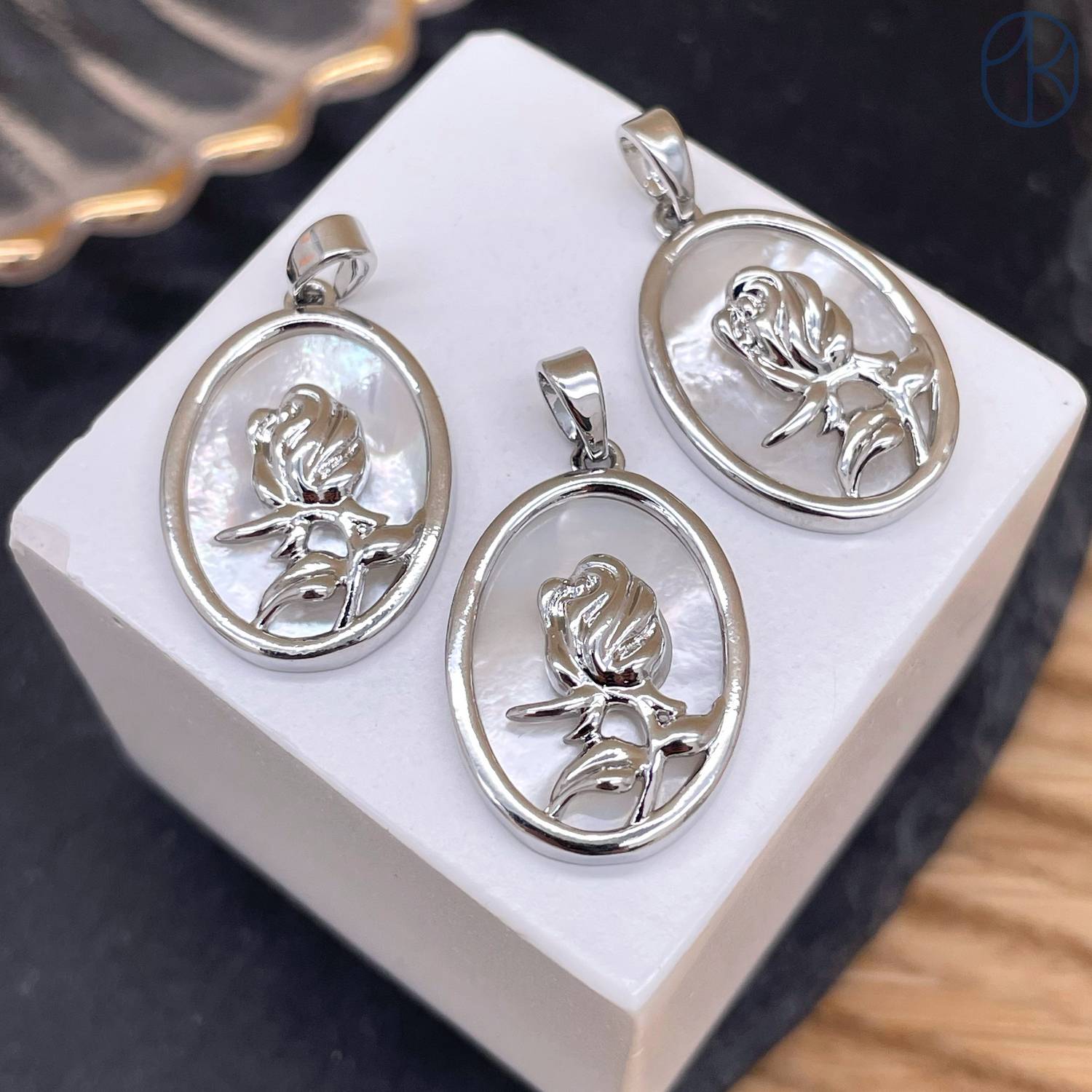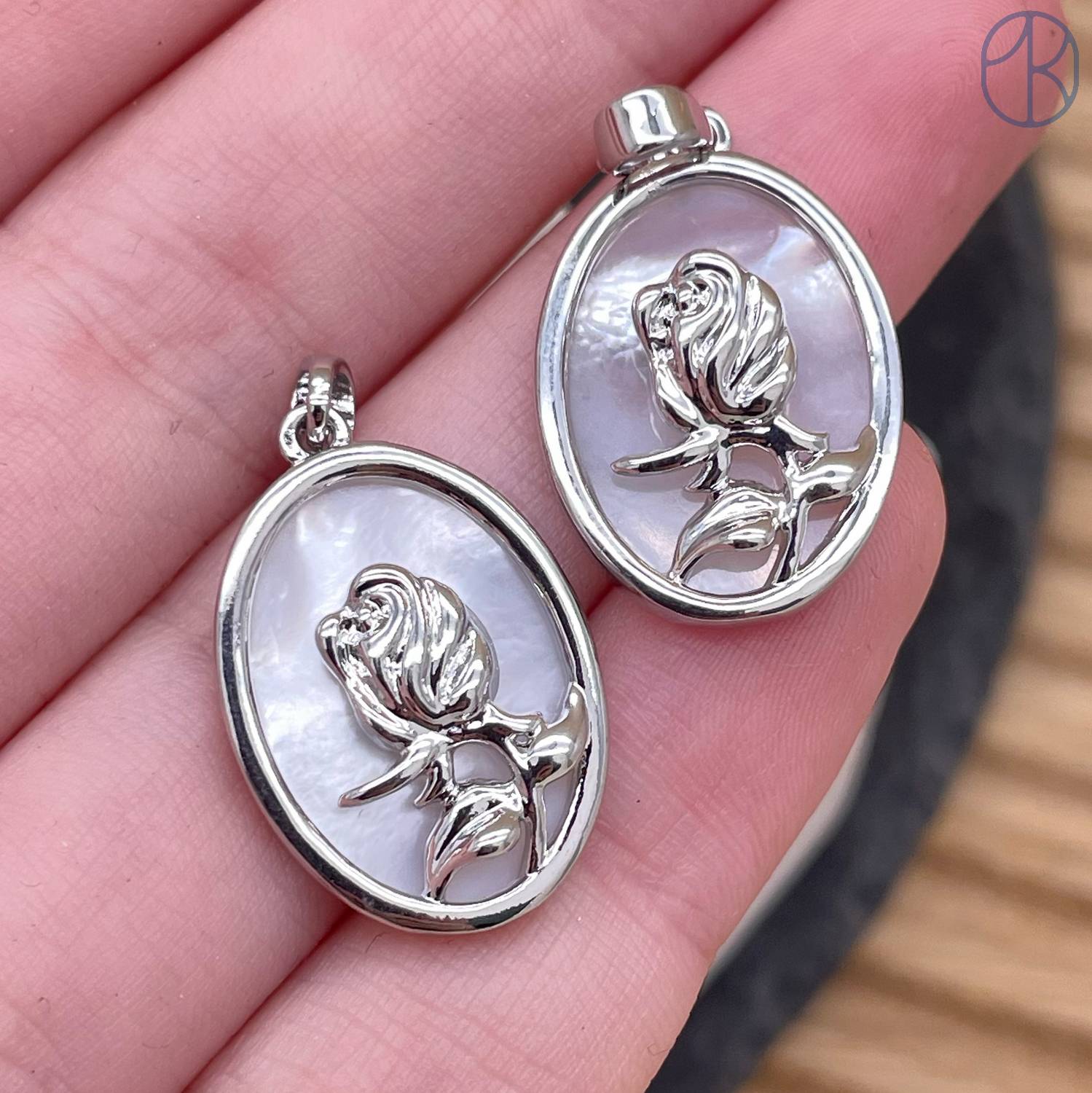 Подвеска роза перламутр, цвет серебро 19х14 мм