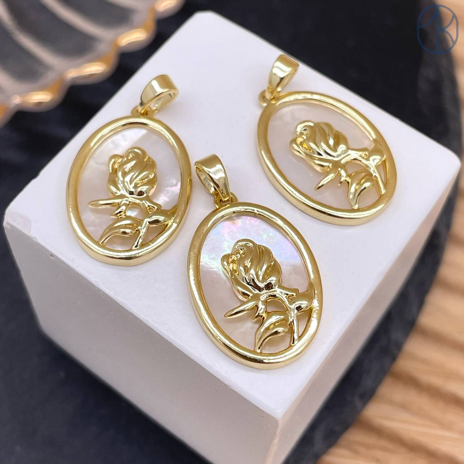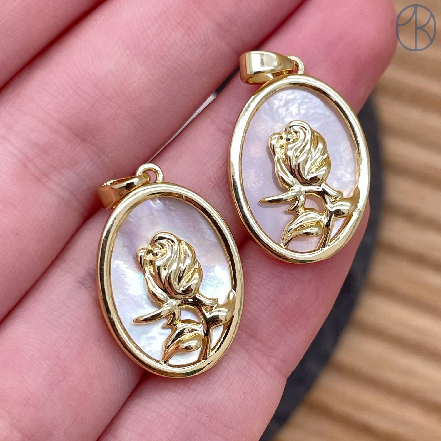 Подвеска роза перламутр, цвет золото 19х14 мм