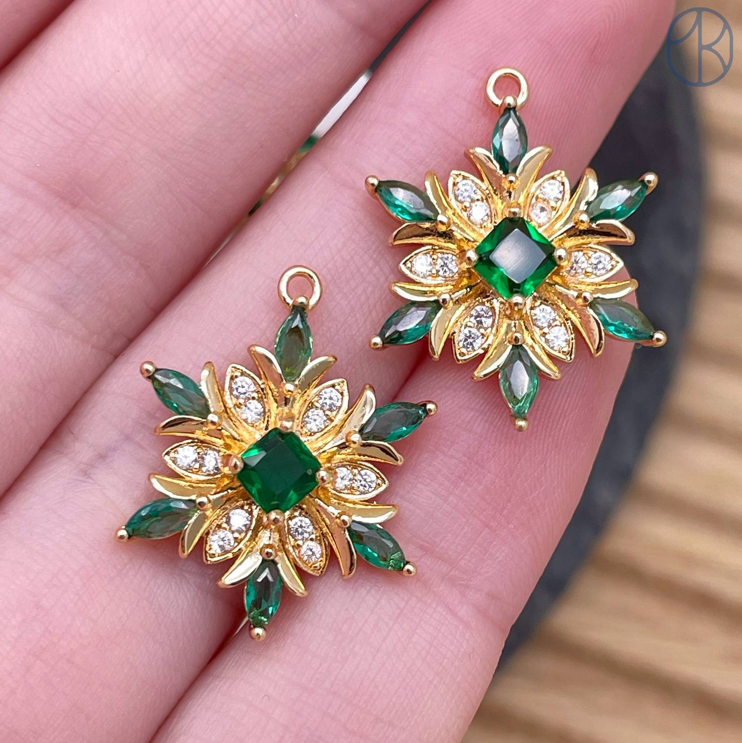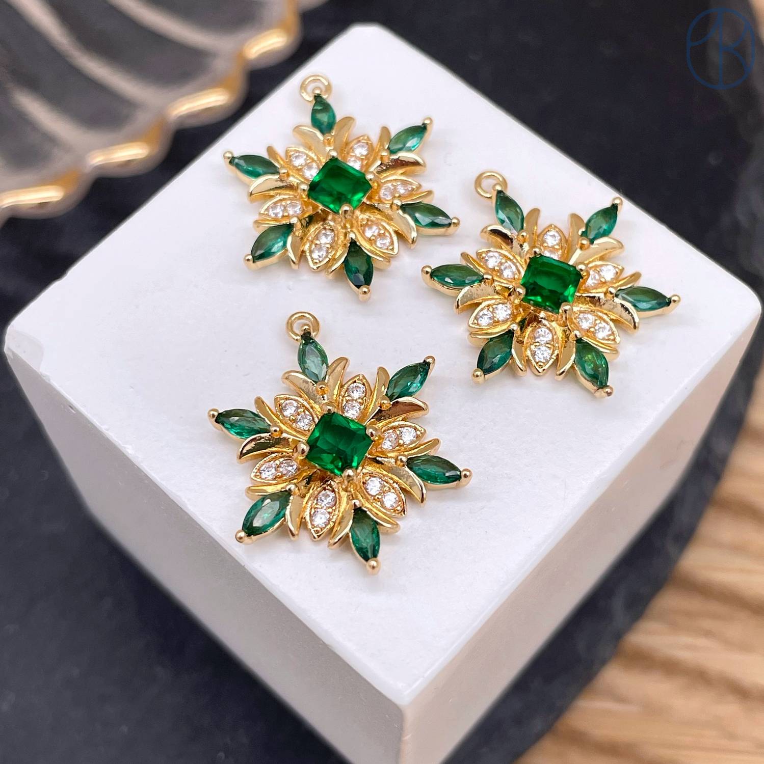Подвеска цветок цирконы, цвет золото 18 мм