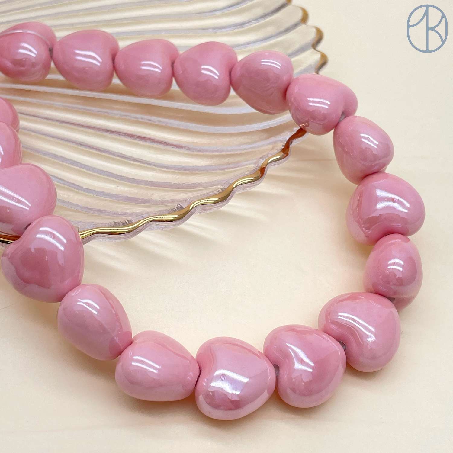 Сердце керамика, цвет розовый №3 15 мм