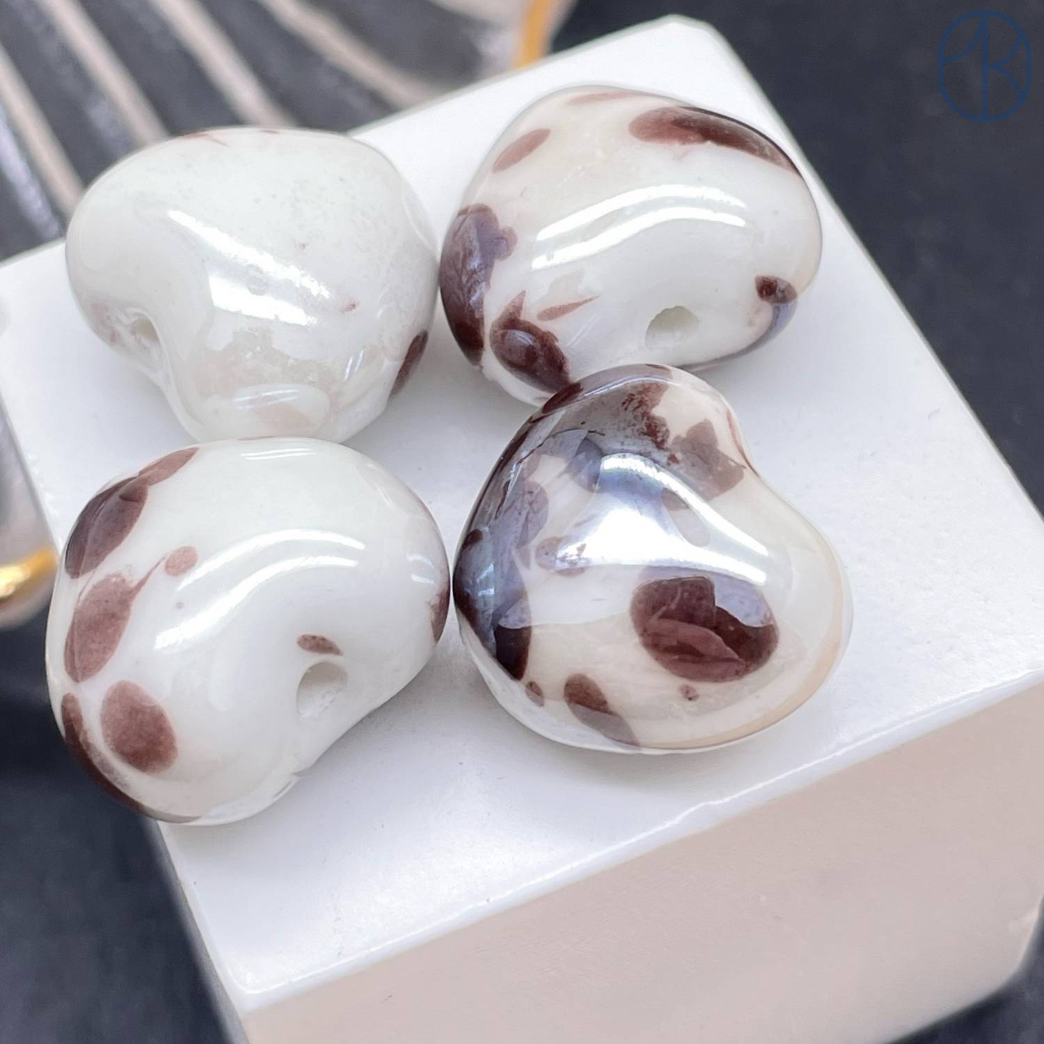 Сердце керамик бело-коричневое 15 мм штучно