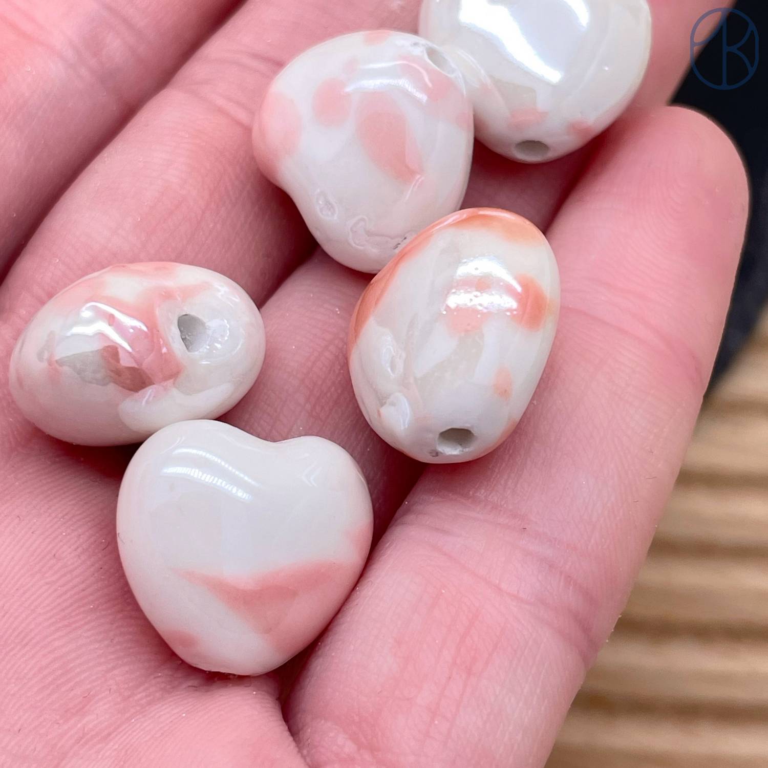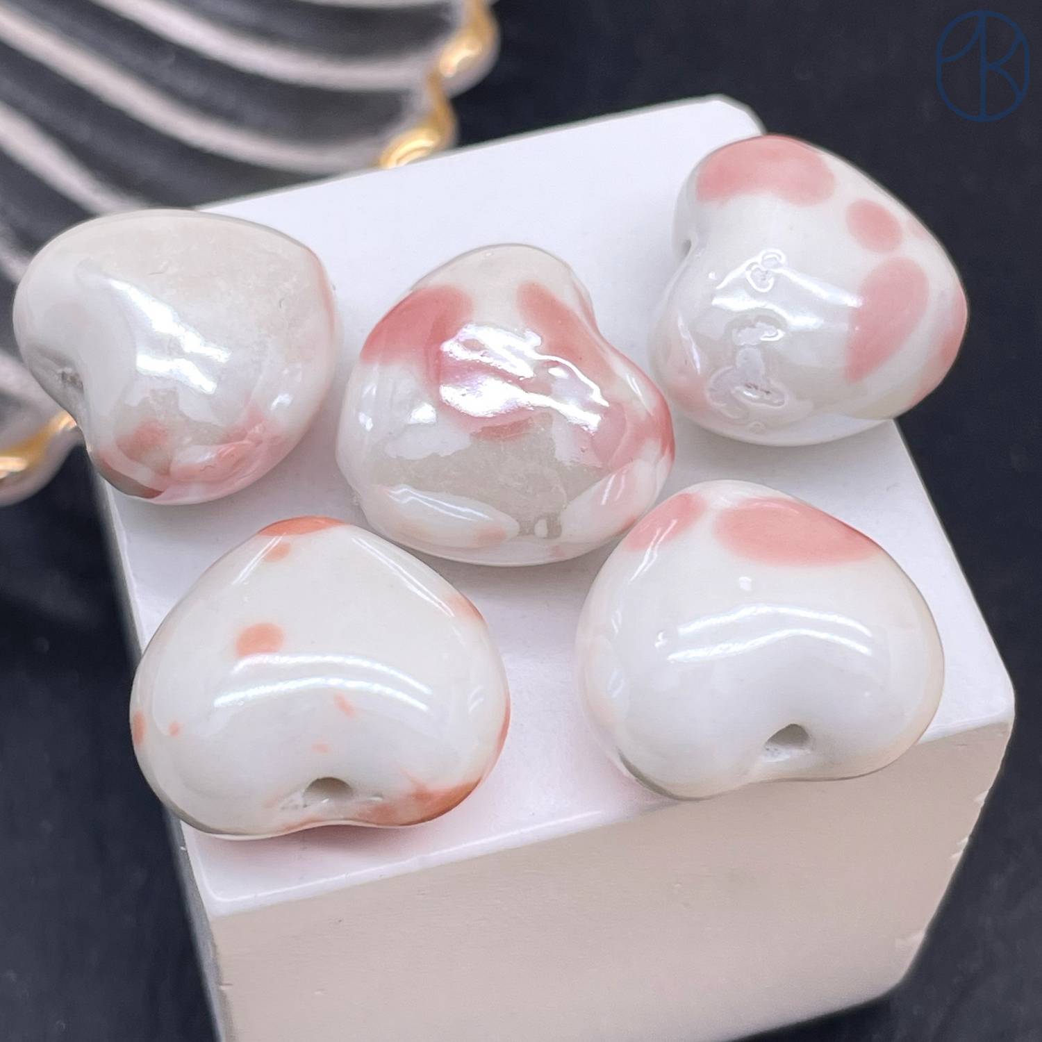 Сердце керамик бело-розовое 15 мм штучно