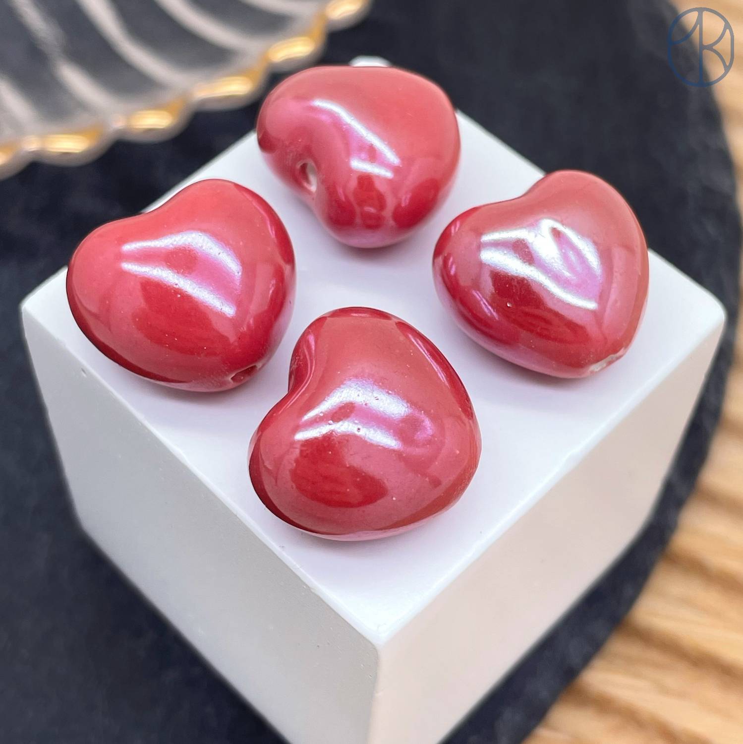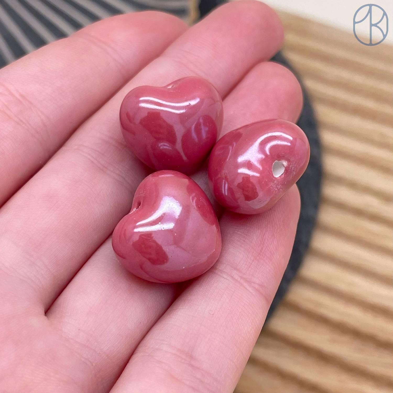 Сердце керамика цвет темно-розовый 15 мм штучно