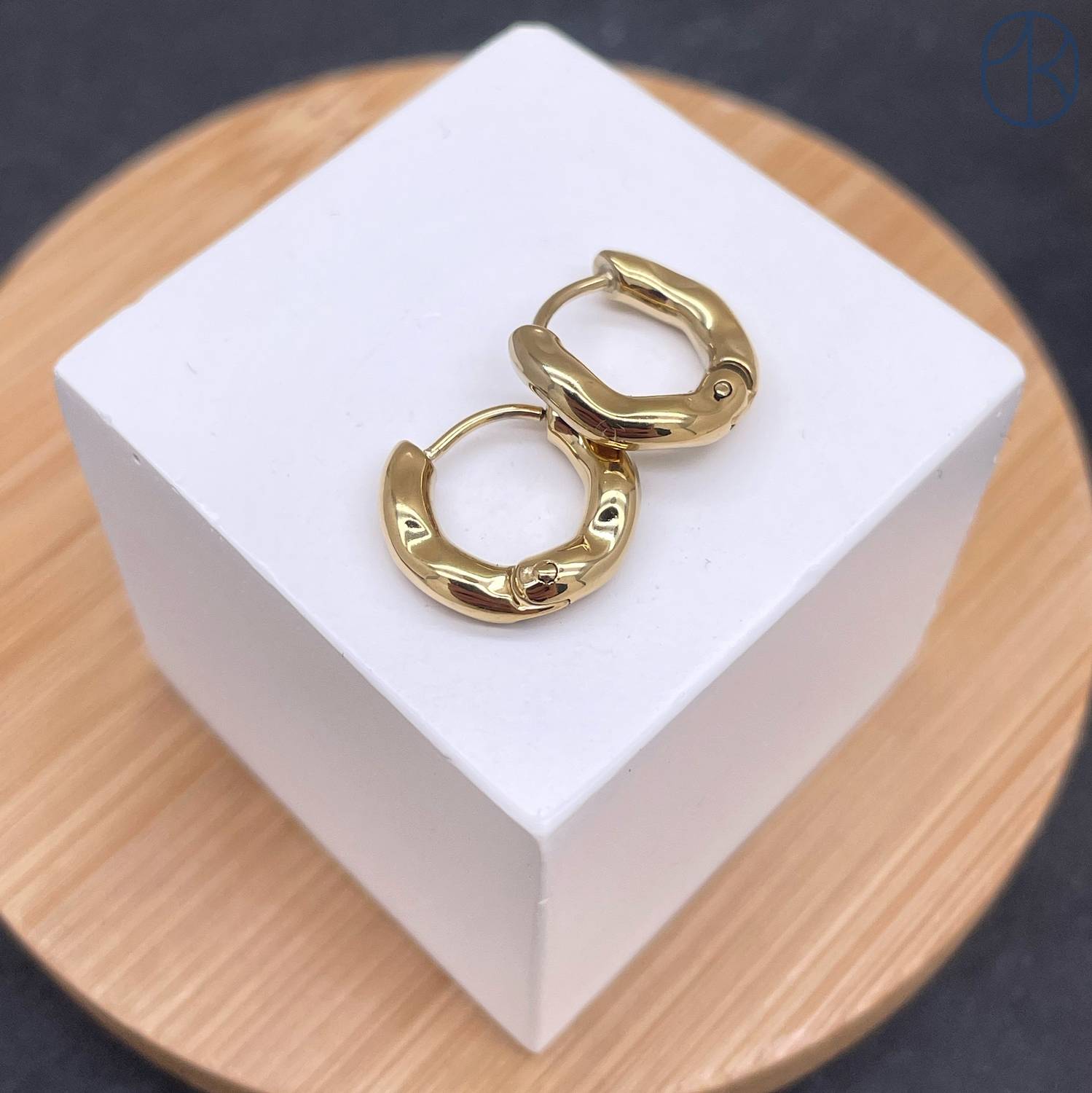 Швензы конго мятые сталь, цвет золото 14К 14 мм