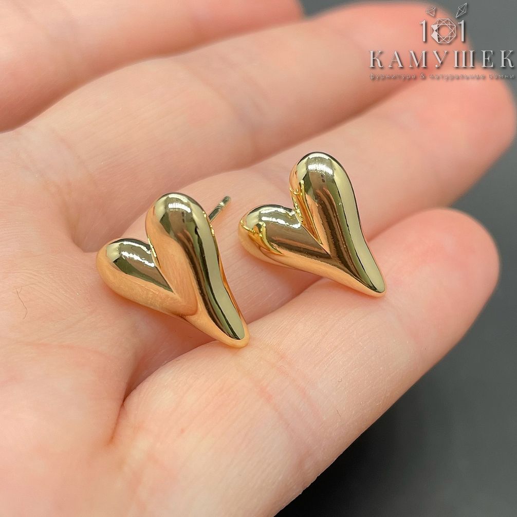 Пусеты сердце, цвет золото 12х14 мм
