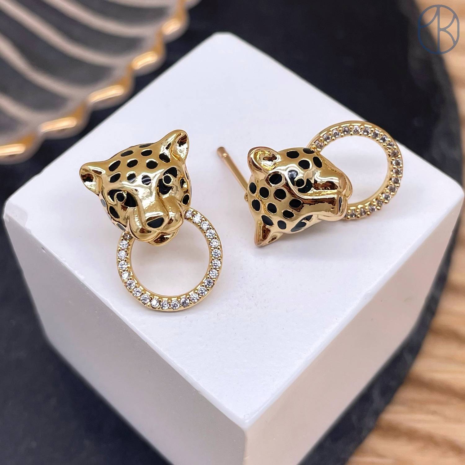 Пусеты пантера цирконы, цвет золото 18 мм