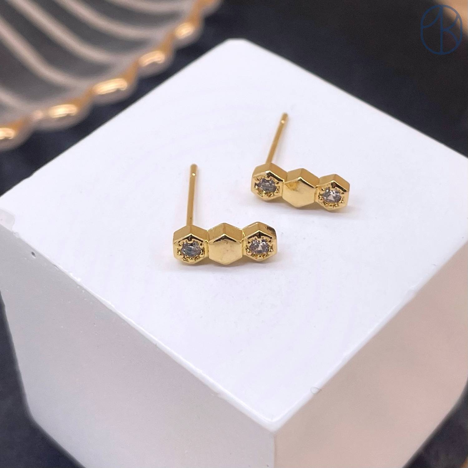 Пусеты цирконы, цвет золото 10 мм