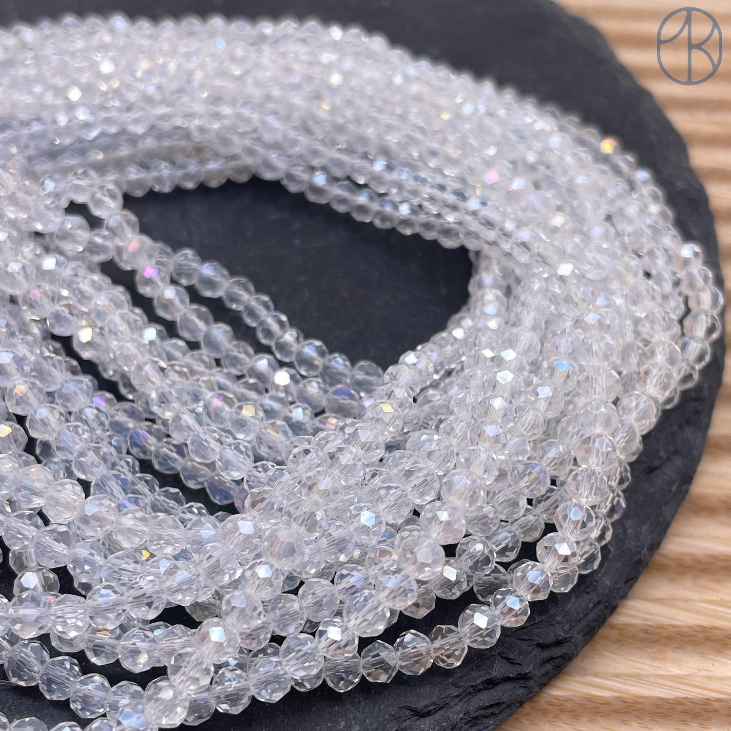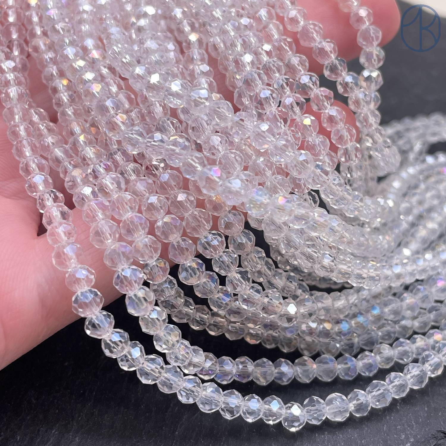 Стекло рондель огранка прозрачное с переливом 4 мм