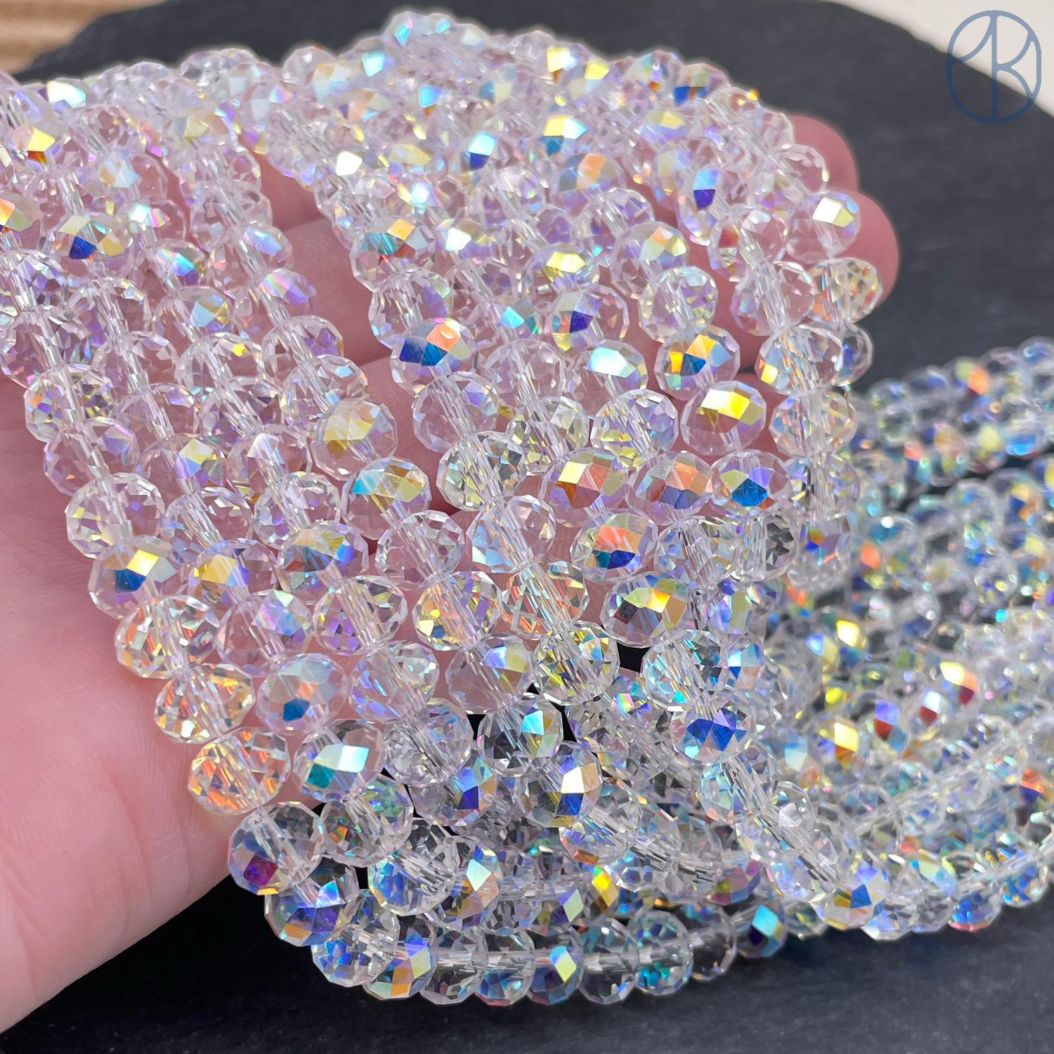 Стекло рондель огранка прозрачное с переливом 7,5 мм