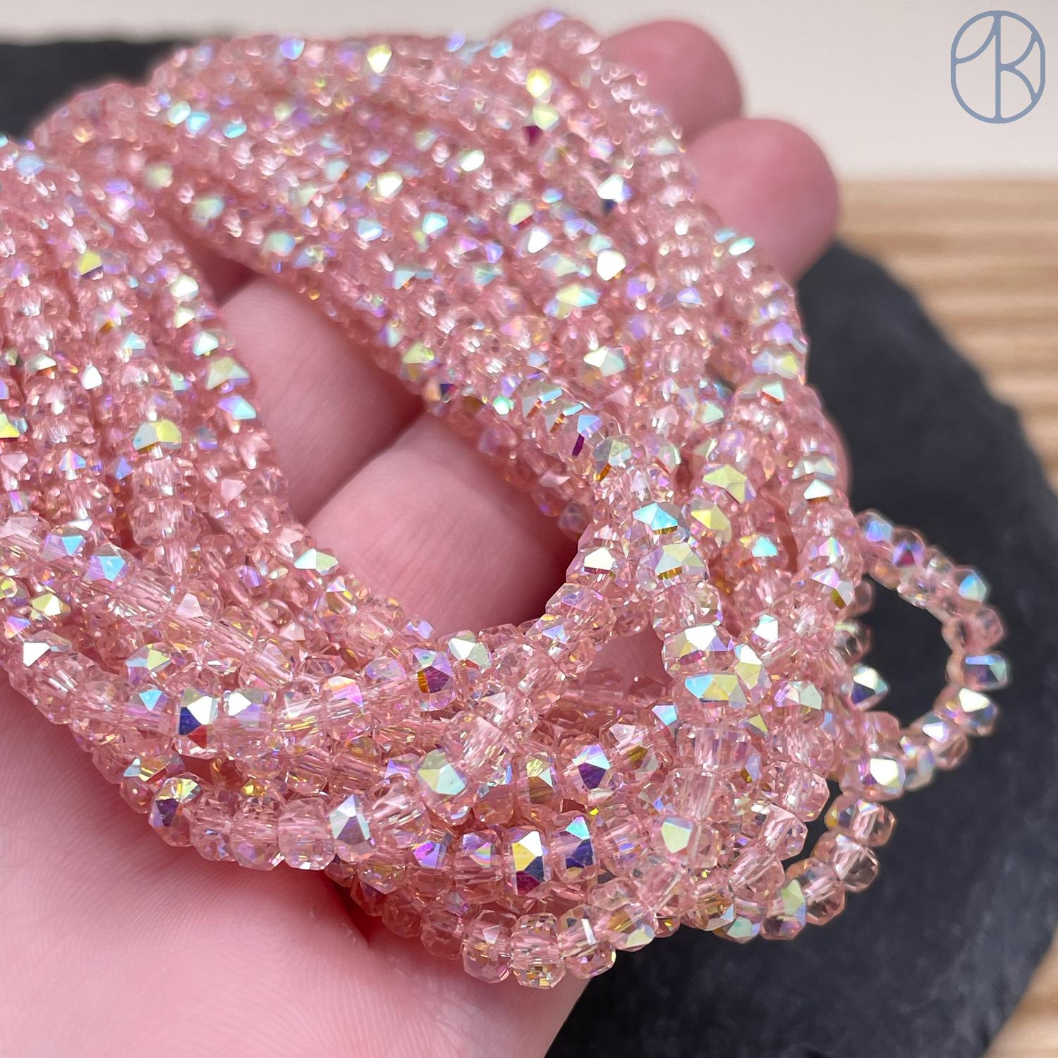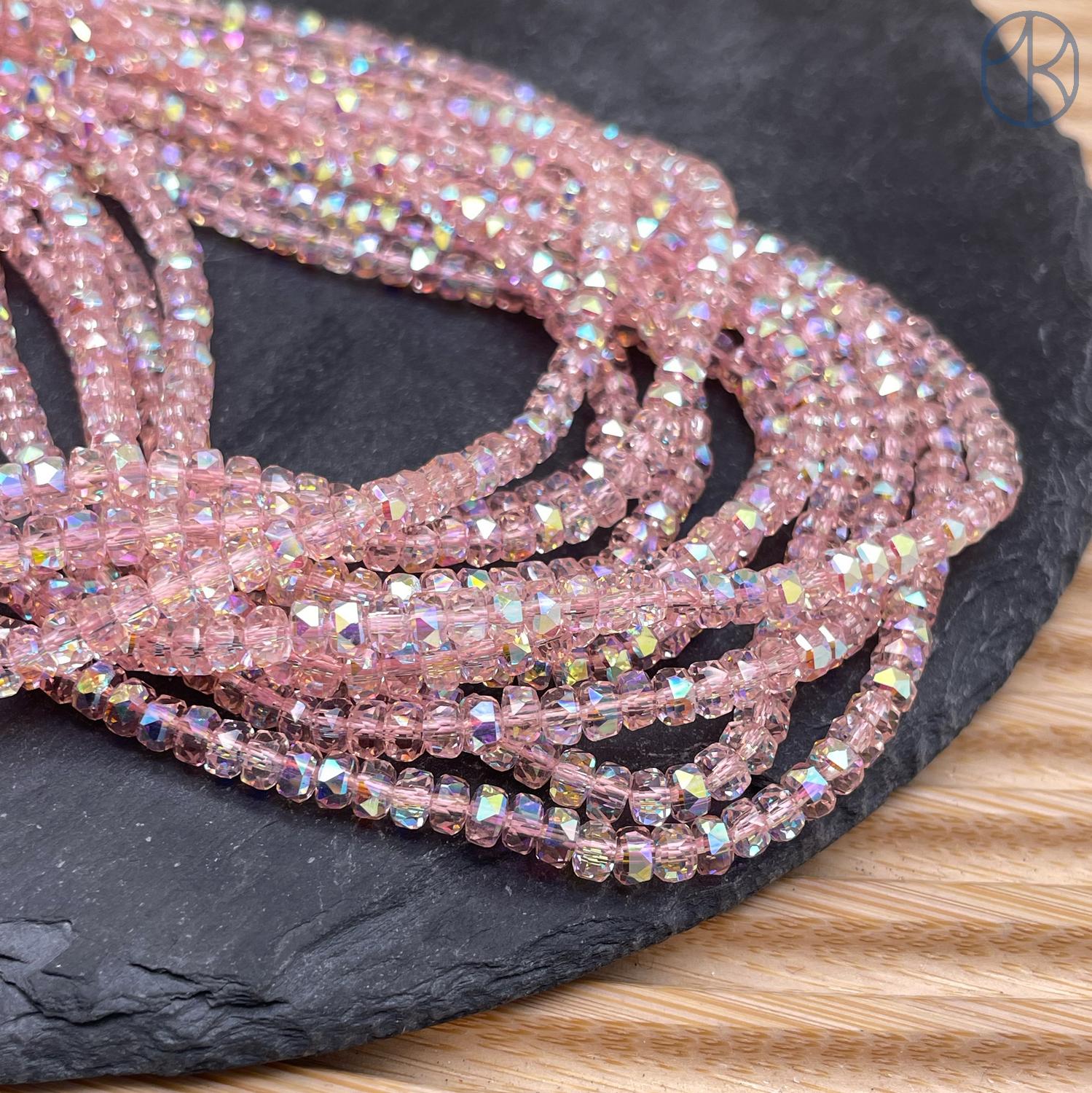 Стекло рондель огранка розовое с переливом, 4,5х2,5 мм