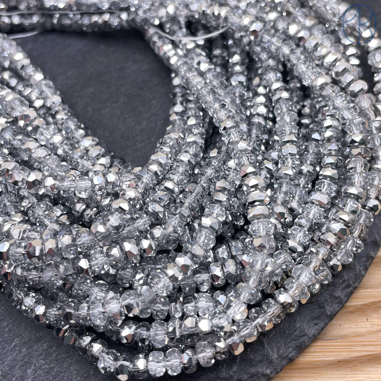 Стекло рондель огранка светло-серое с переливом 4х2 мм