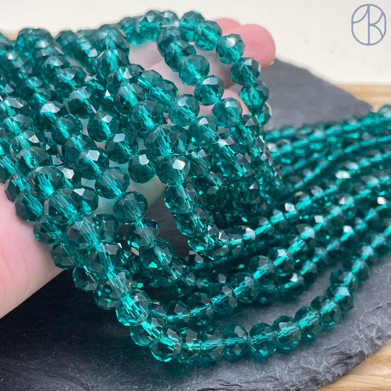 Стекло рондель огранка темно-бирюзовое 8 мм