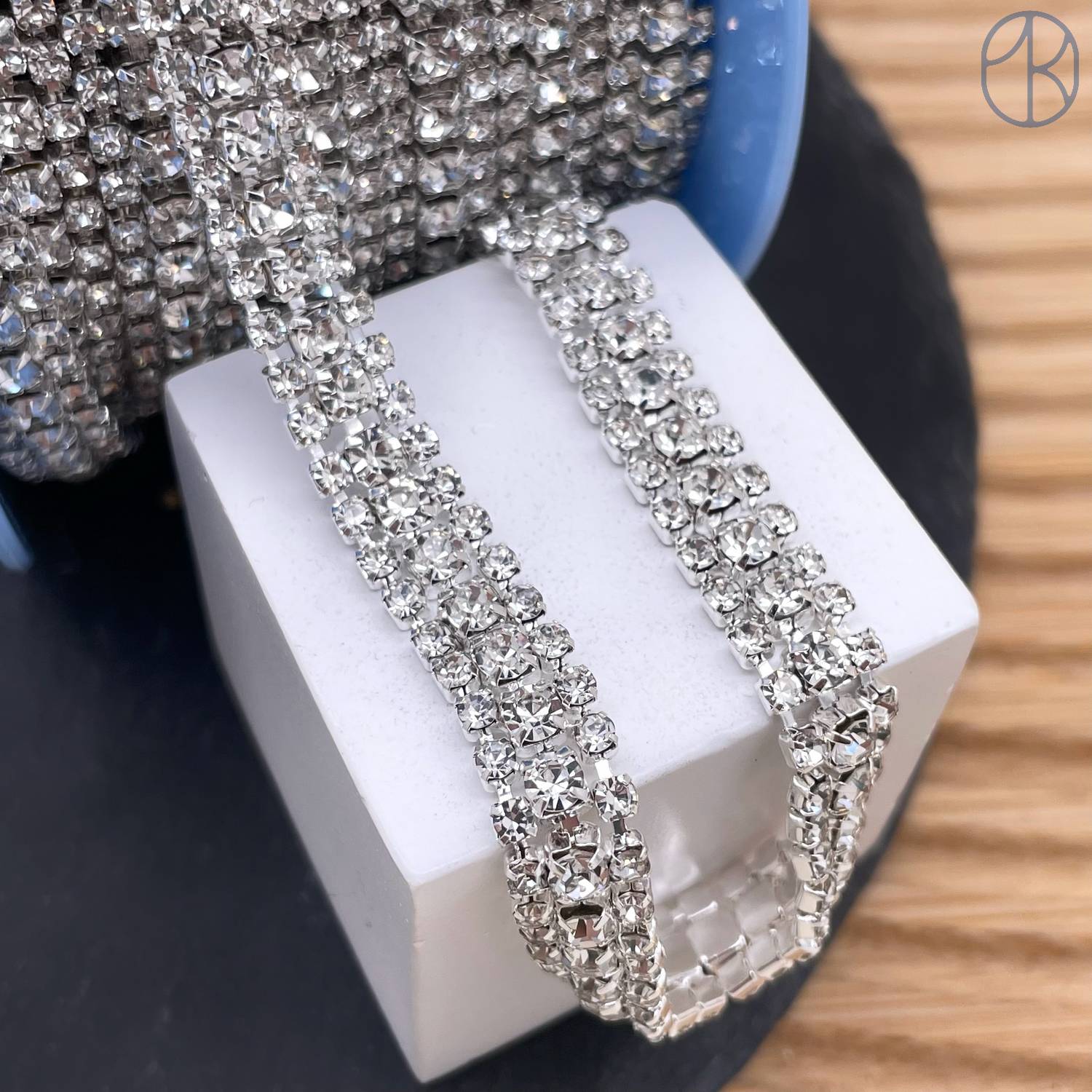 Стразовая лента №332, цвет серебро 8 мм