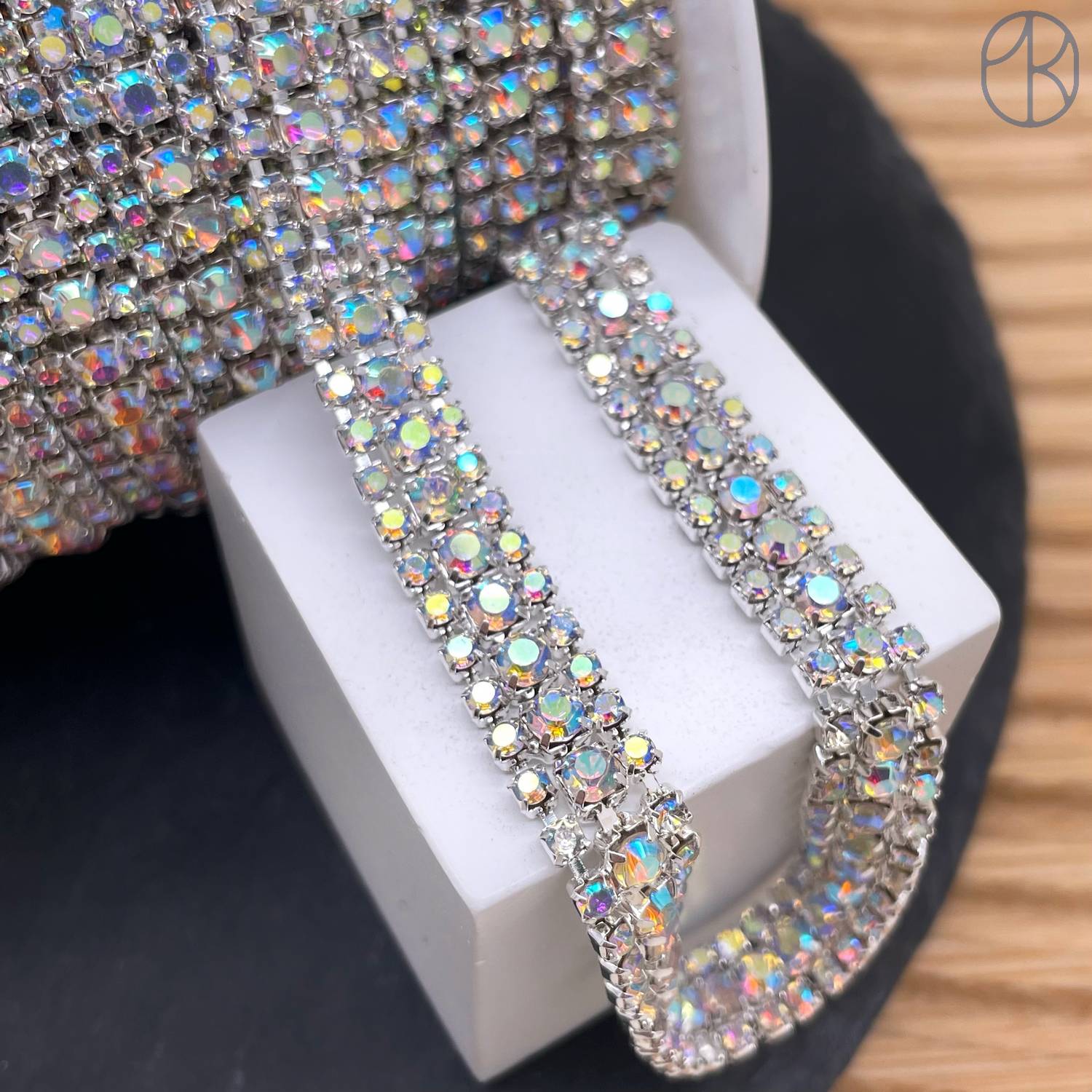 Стразовая лента №333, цвет серебро 8 мм