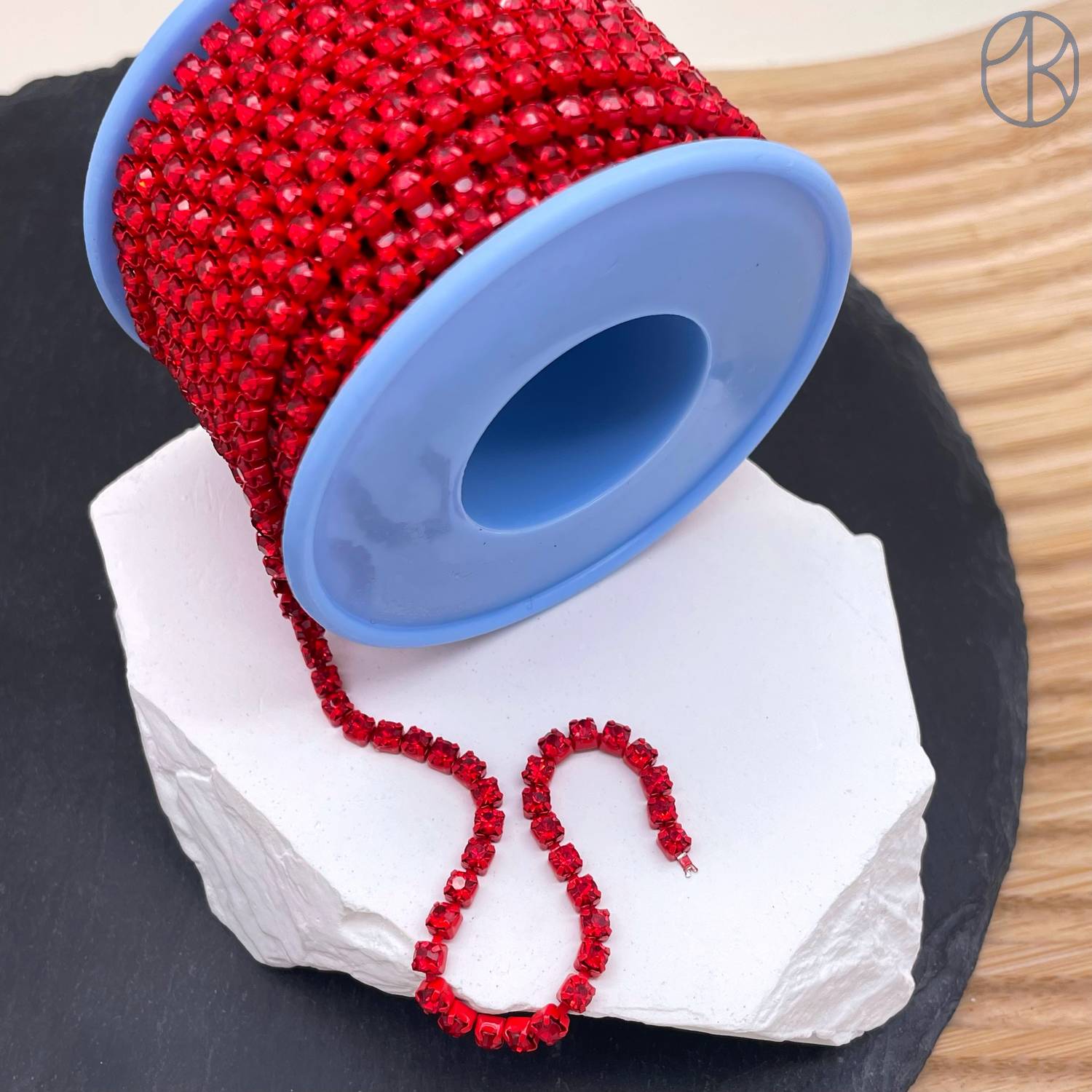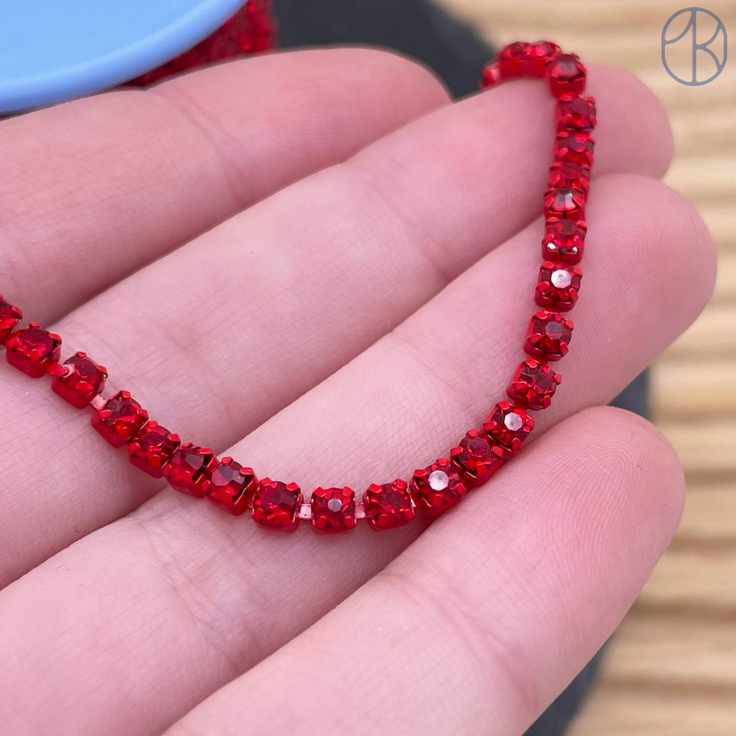 Стразовая лента №334, цвет красный 3 мм