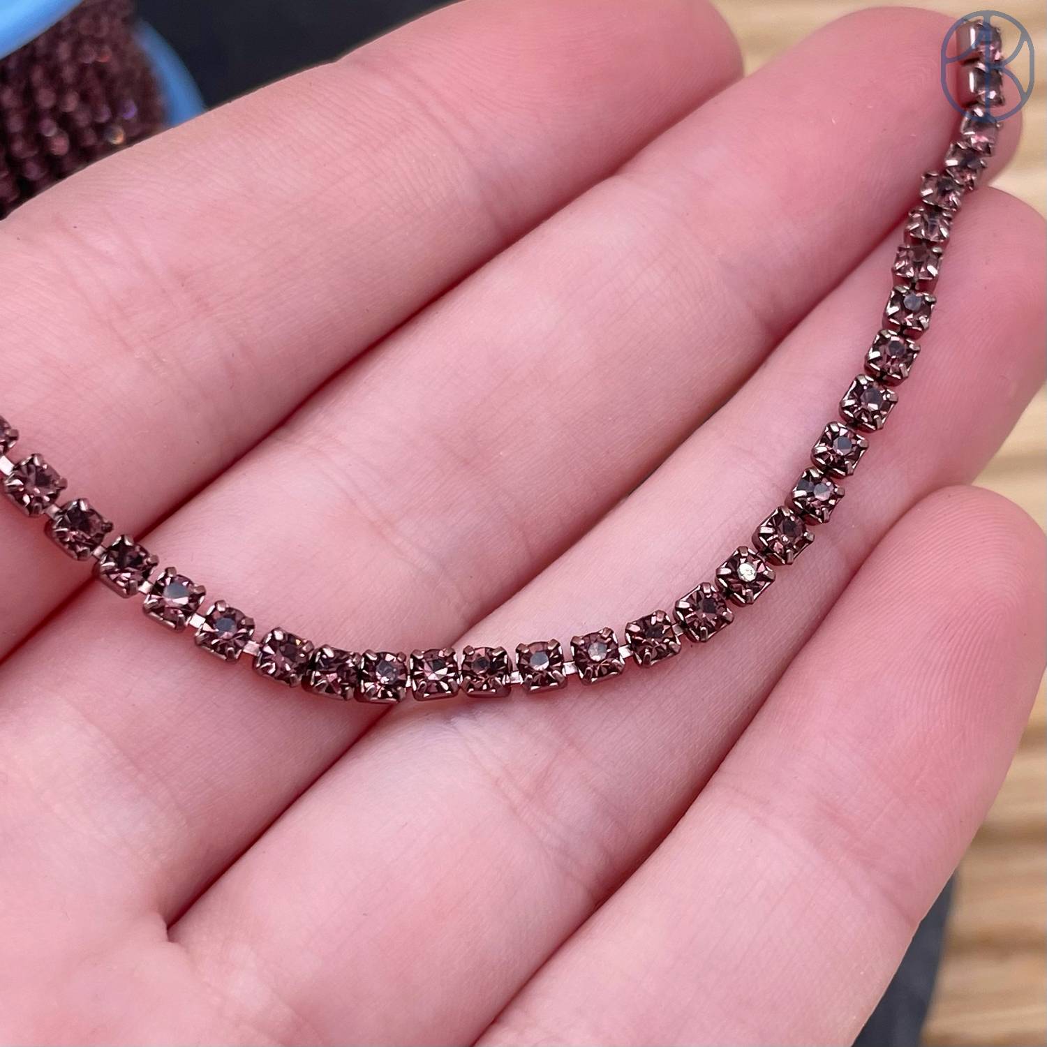 Стразовая лента №336, цвет темно-сиреневый 3 мм