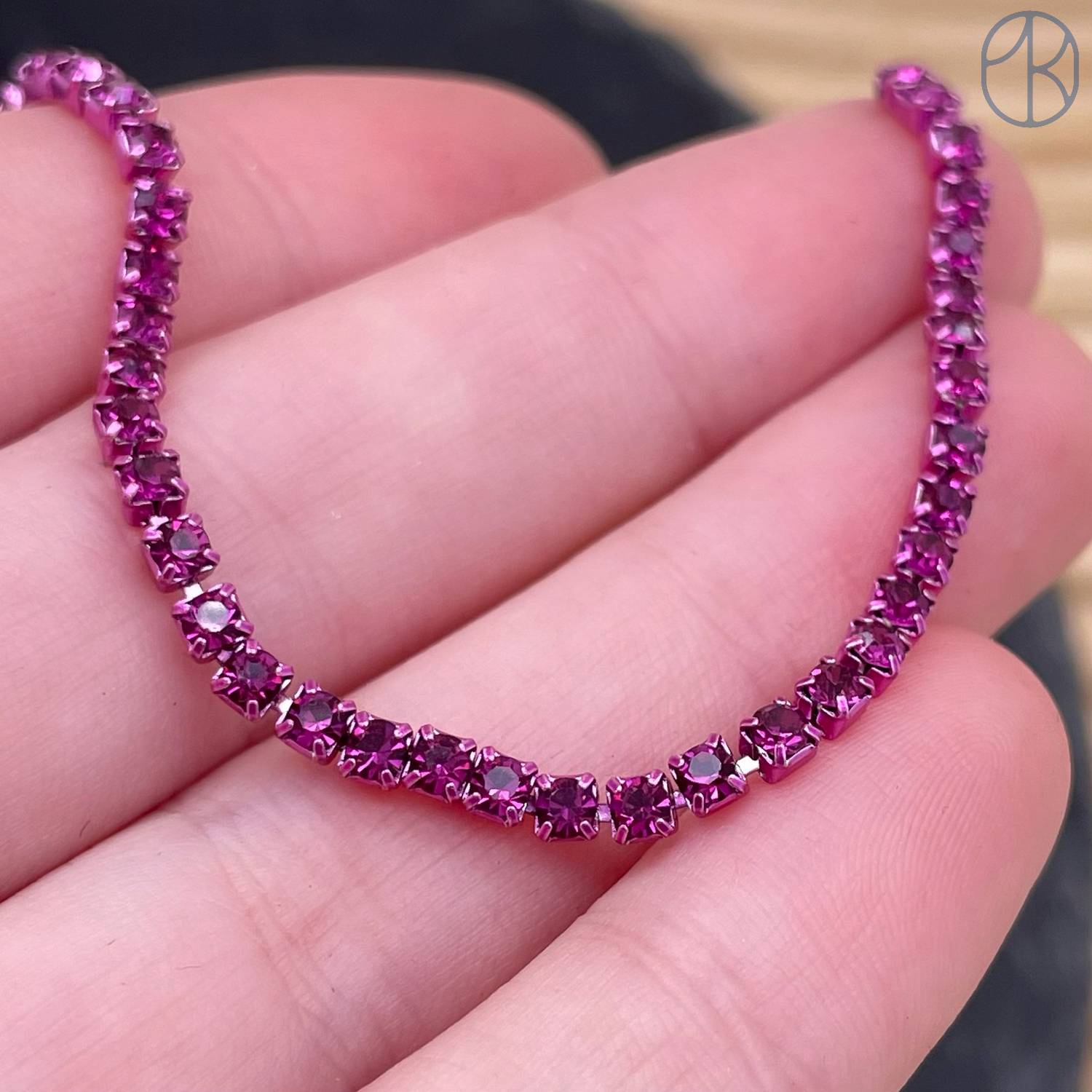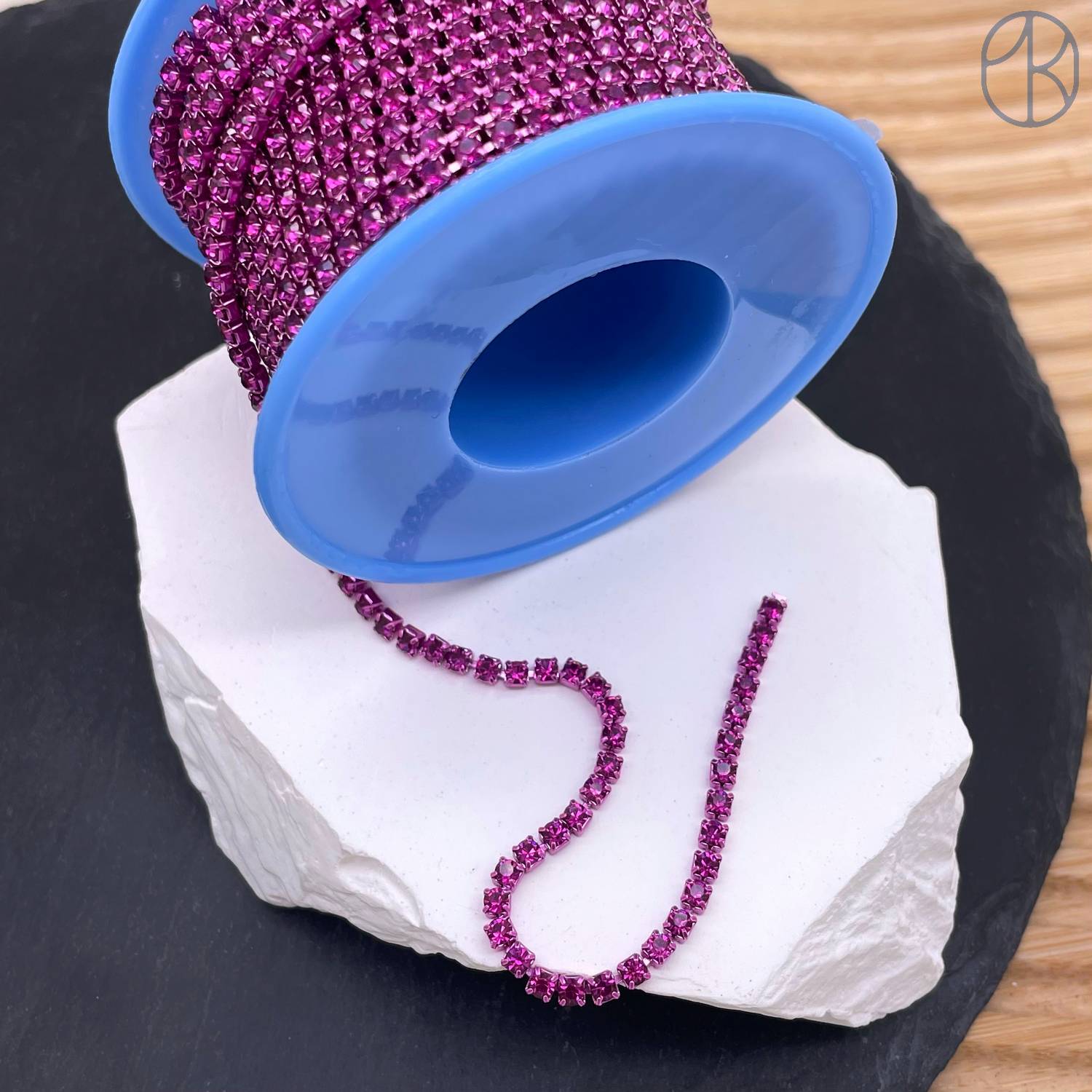 Стразовая лента №337, цвет темно-розовый 3 мм