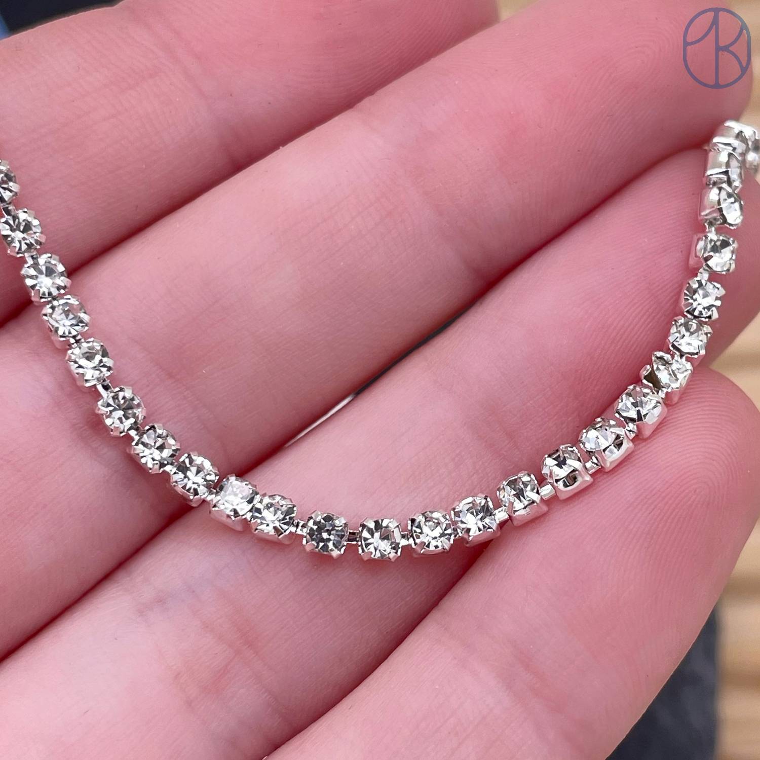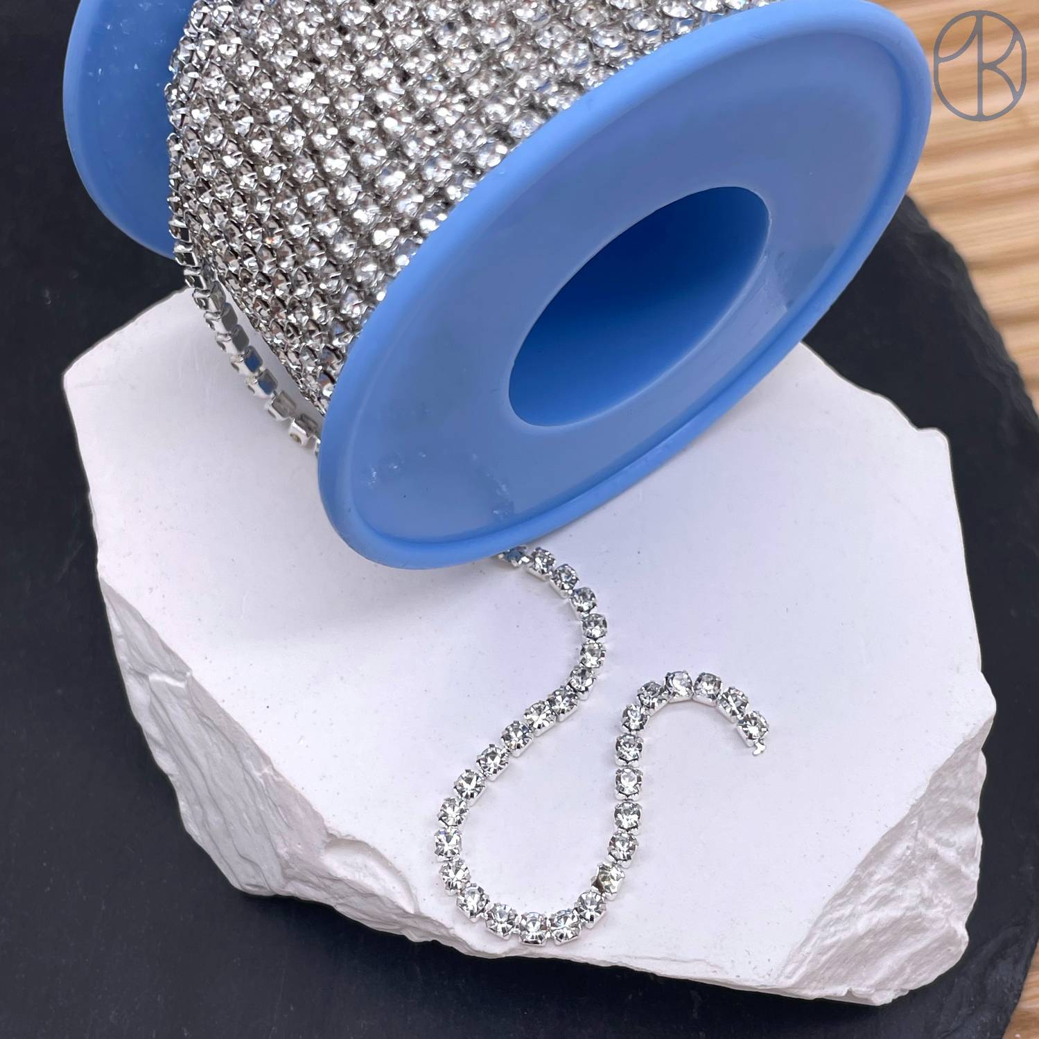 Стразовая лента №341, цвет серебро 3 мм