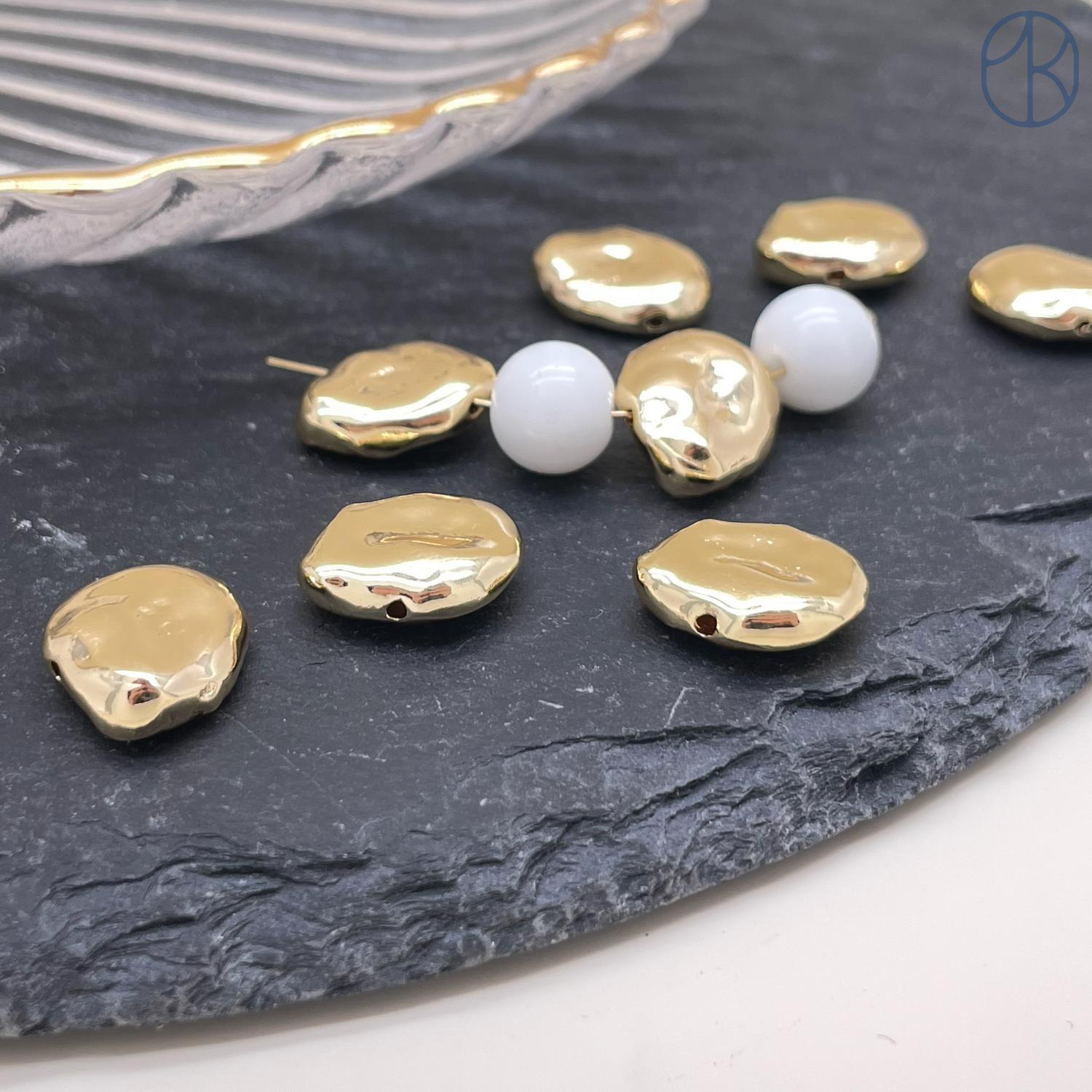 Бусина фриформ, цвет золото 12 мм