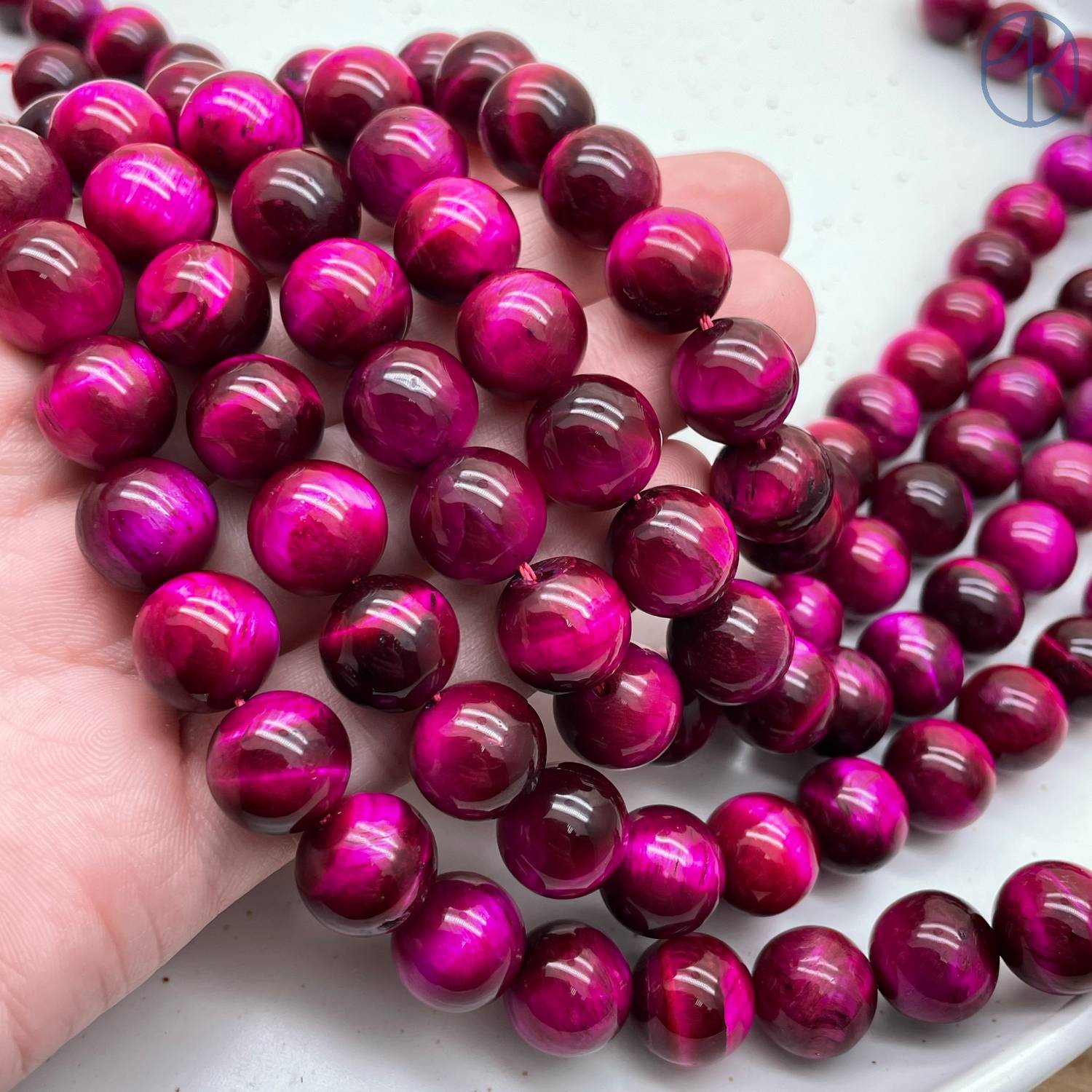 Тигровый глаз тонированный фуксия 12 мм