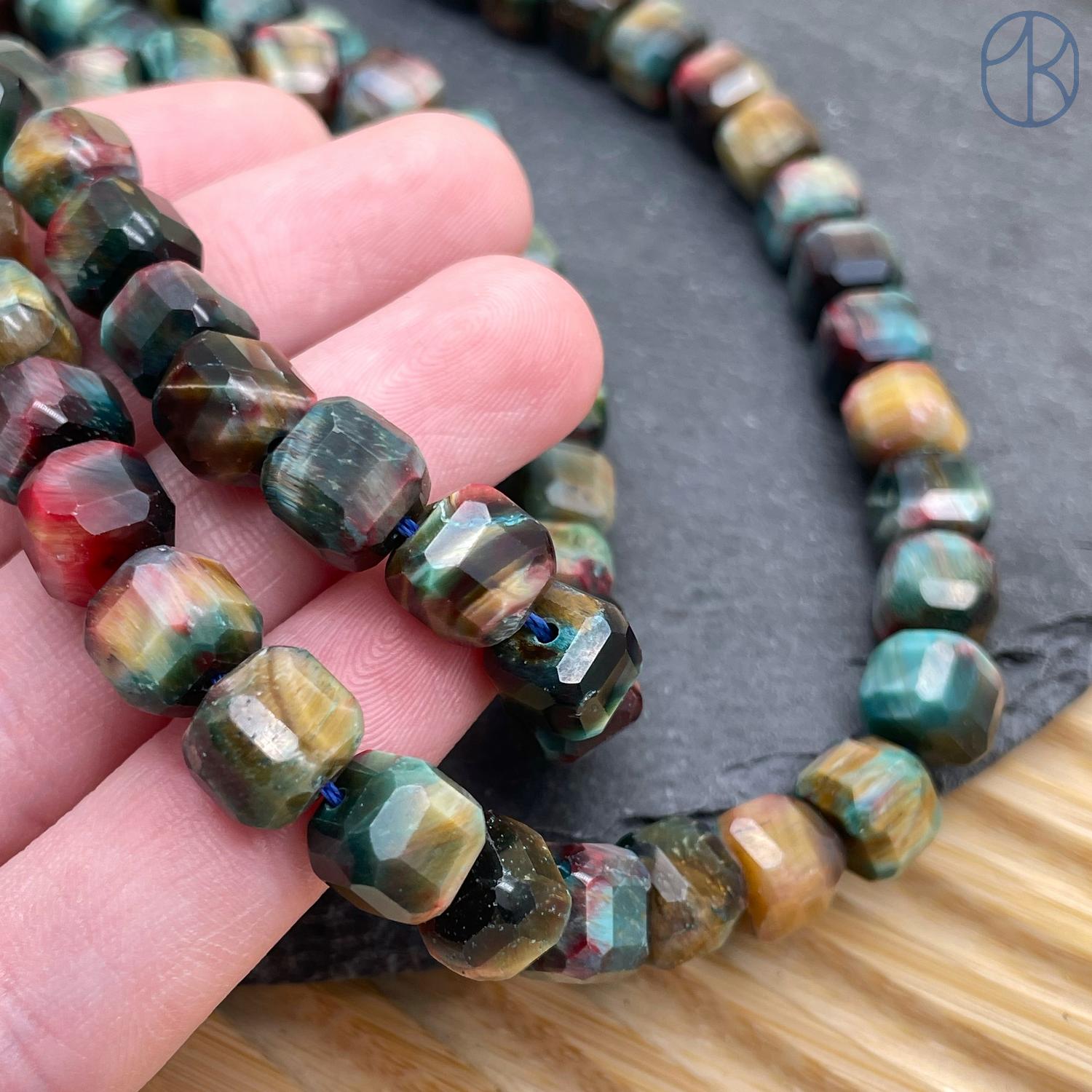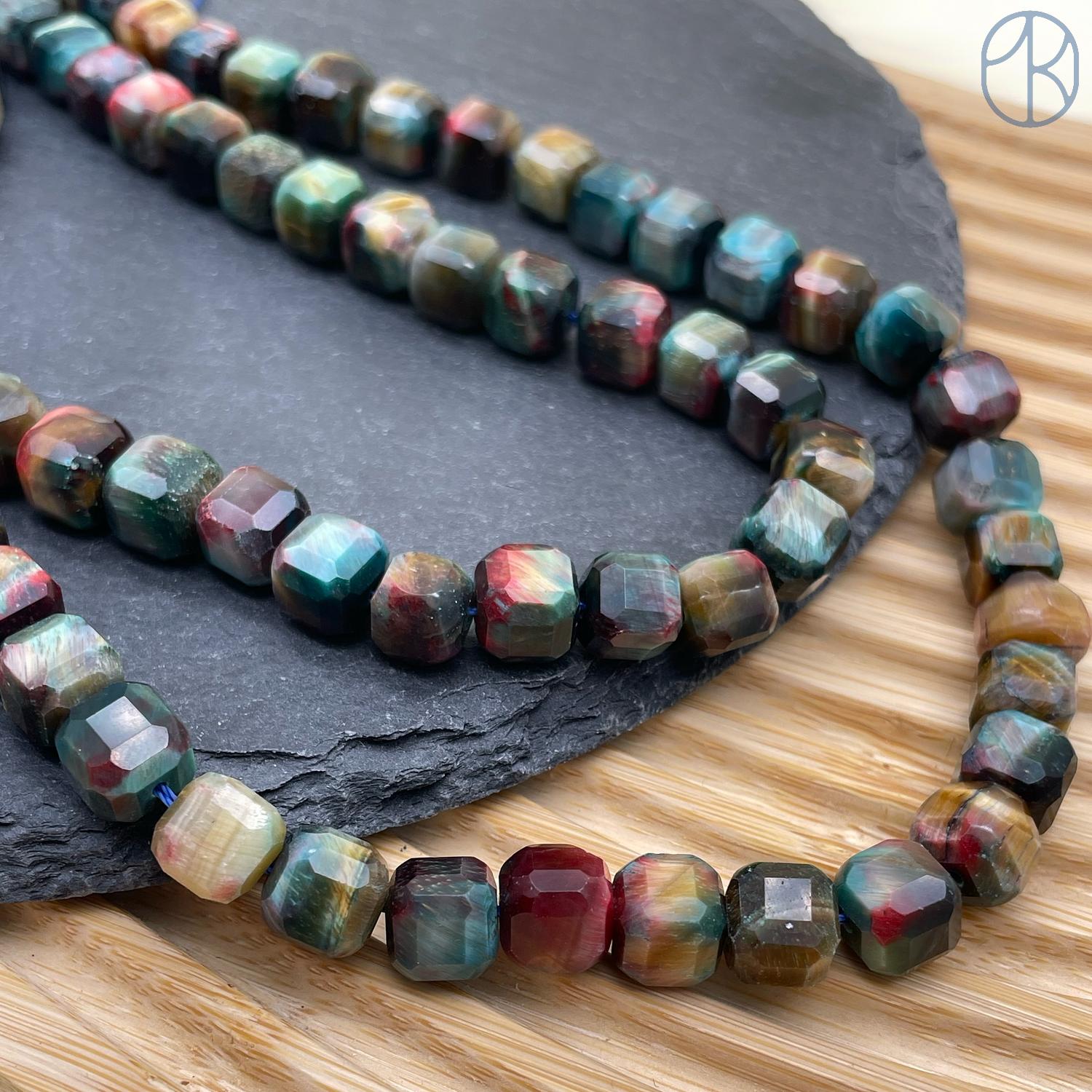 Тигровый глаз тонированный куб огранка 8,5 мм