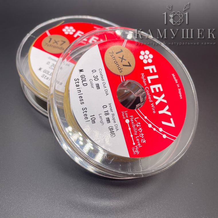 Тросик ювелирный SakuLux (Flexy7) 1x7 струн Золото 0,3мм 10м