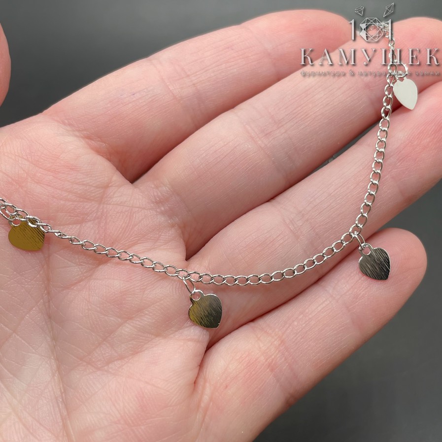 Цепь №13 цвет серебро 2 мм подвески сердце