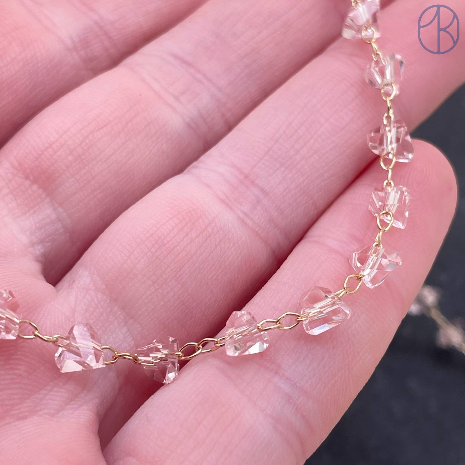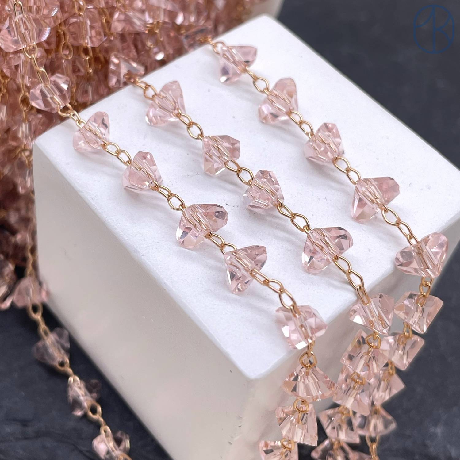 Цепь №312 цвет золото чешское стекло розовое 6 мм