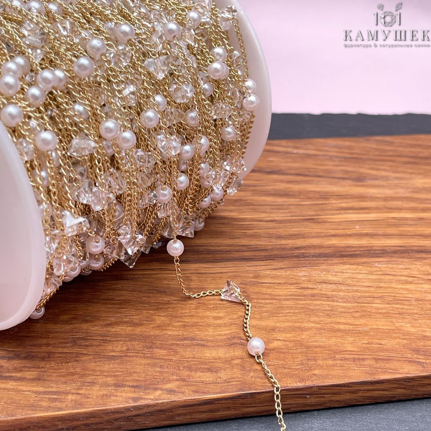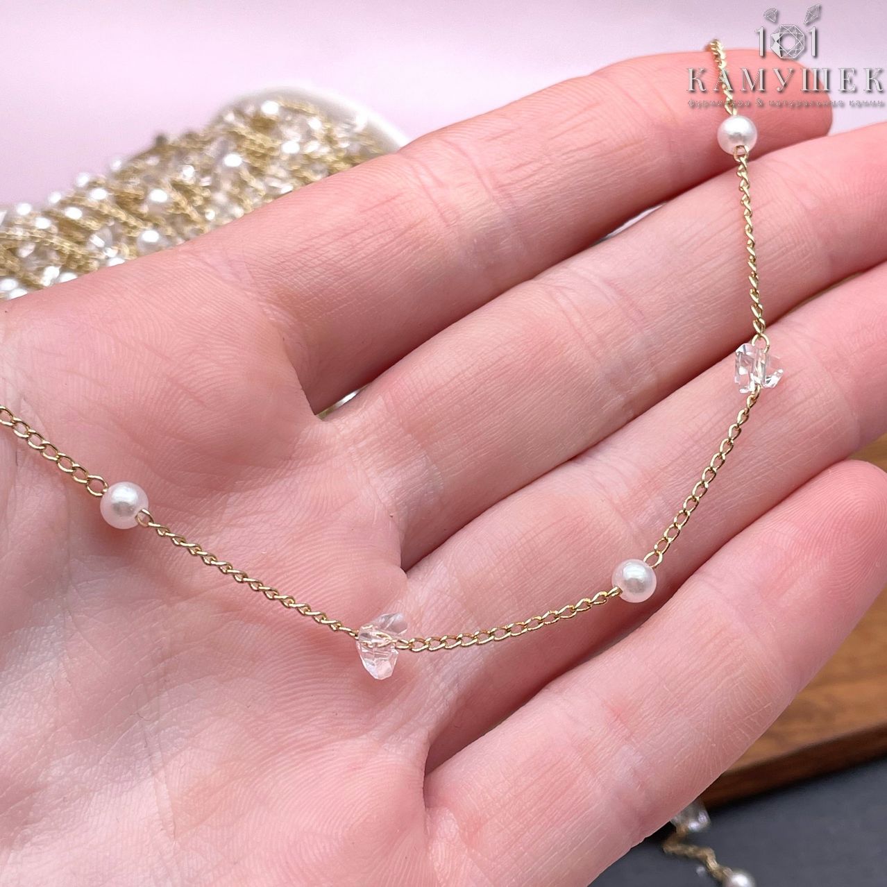 Цепь №273-1 цвет золото 1,3 мм, имитация жемчуга