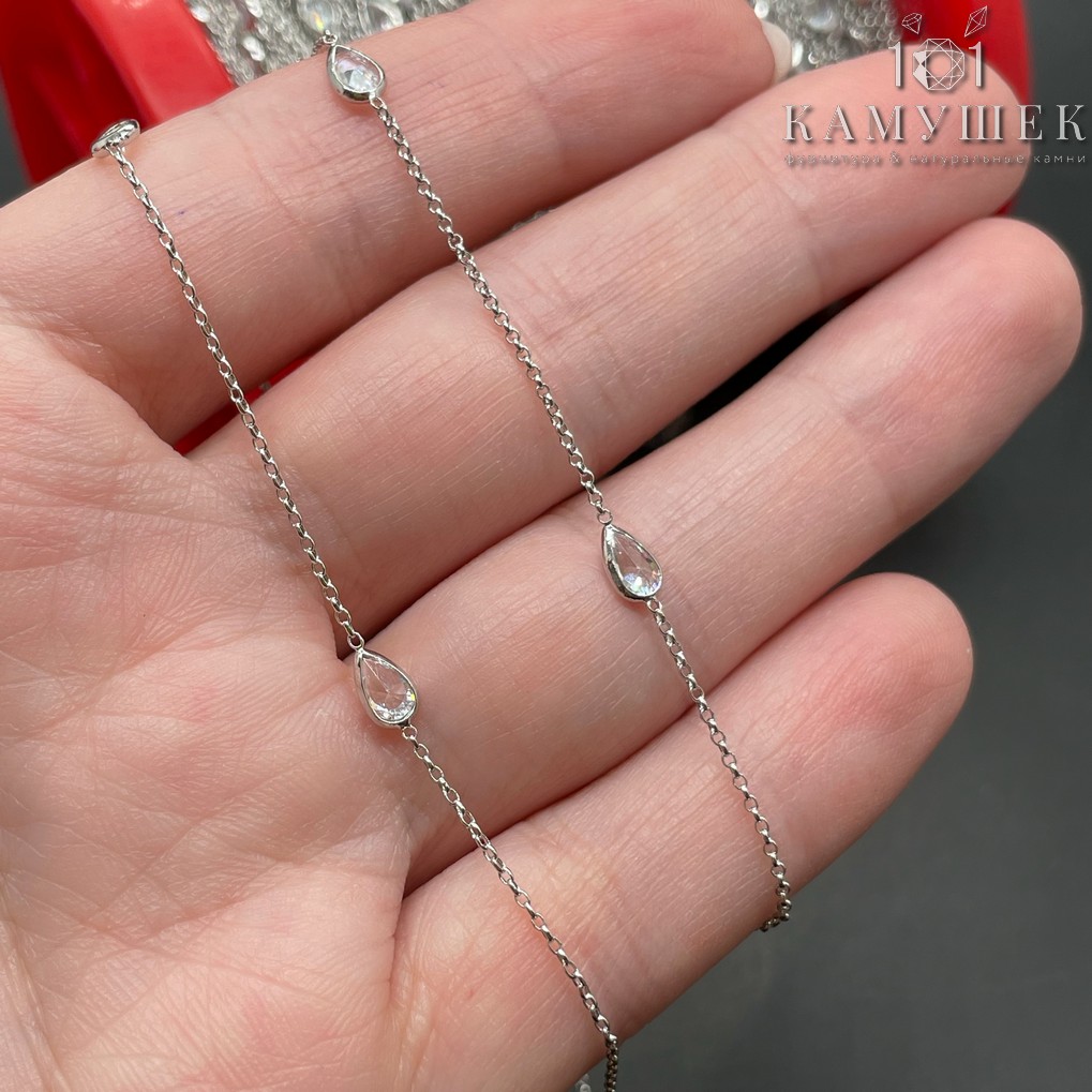 Цепь №204 цвет серебро капля циркон 8х3 мм