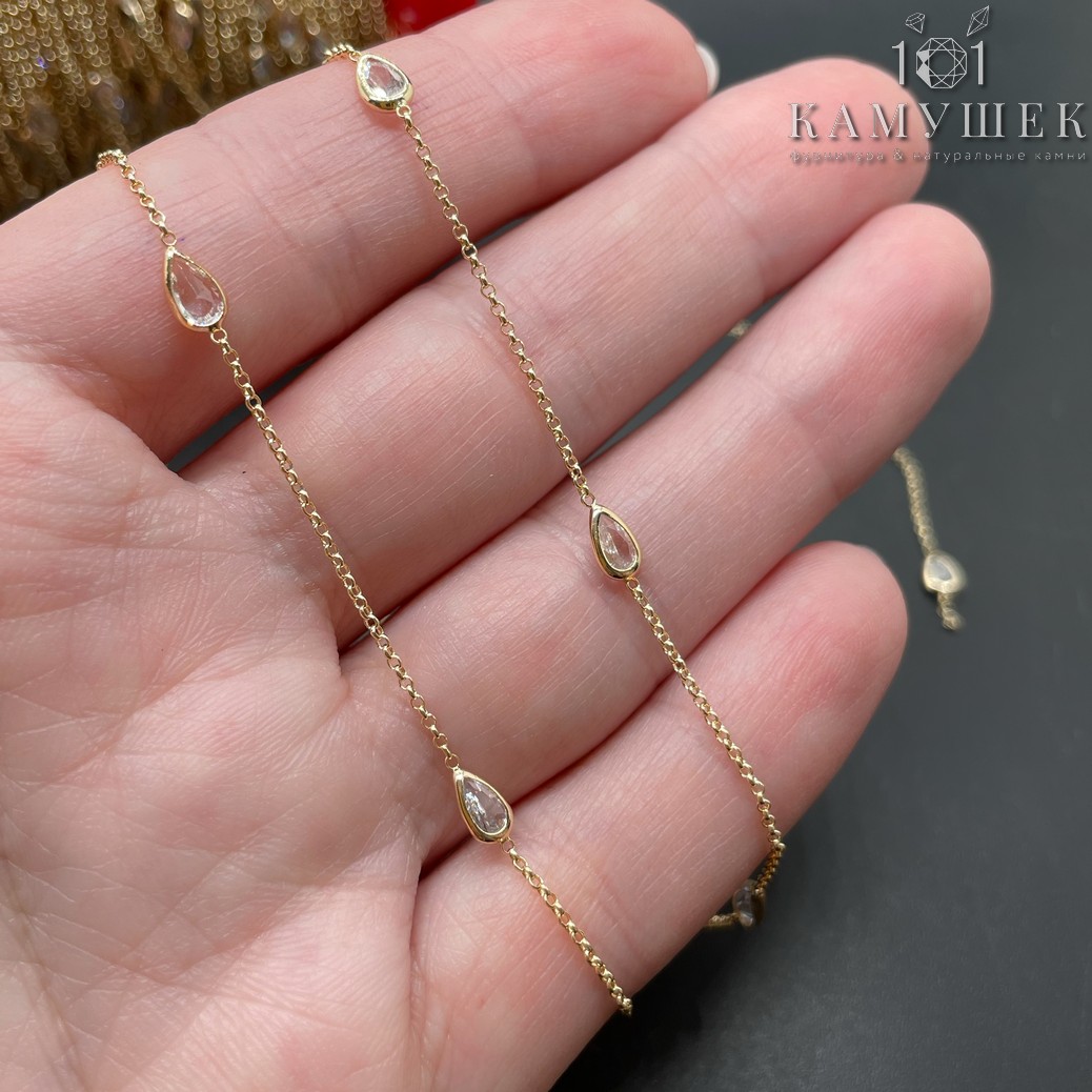 Цепь №204-1 цвет золото капля циркон 8х3 мм