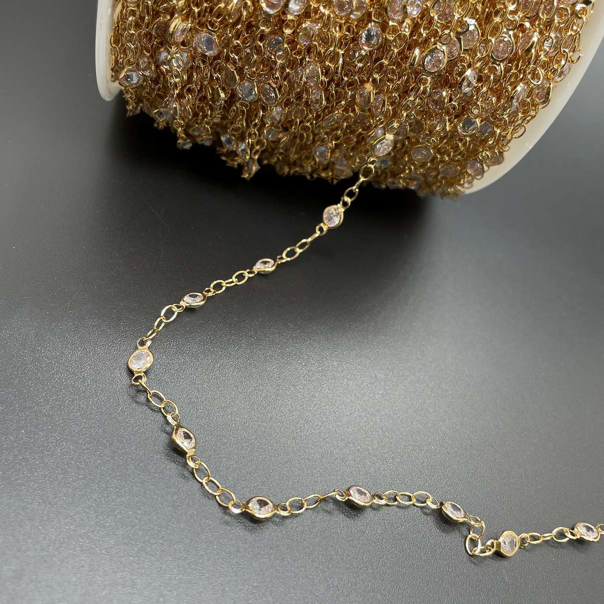 Цепь №201-1 цвет золото 3х2 мм циркон