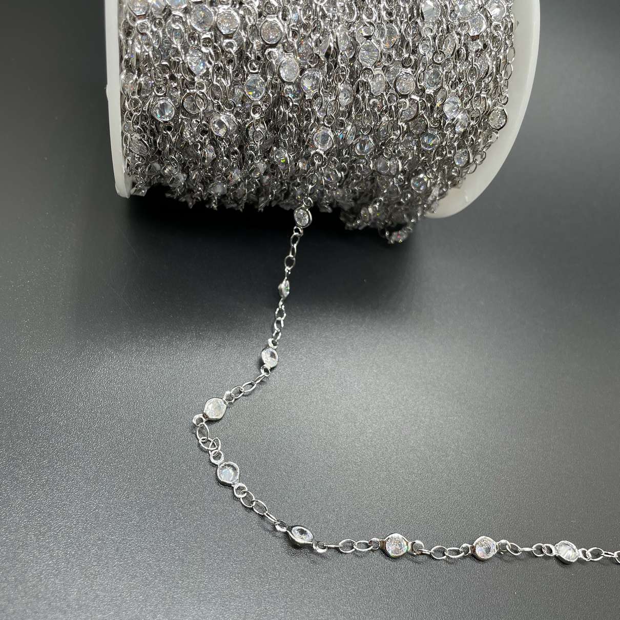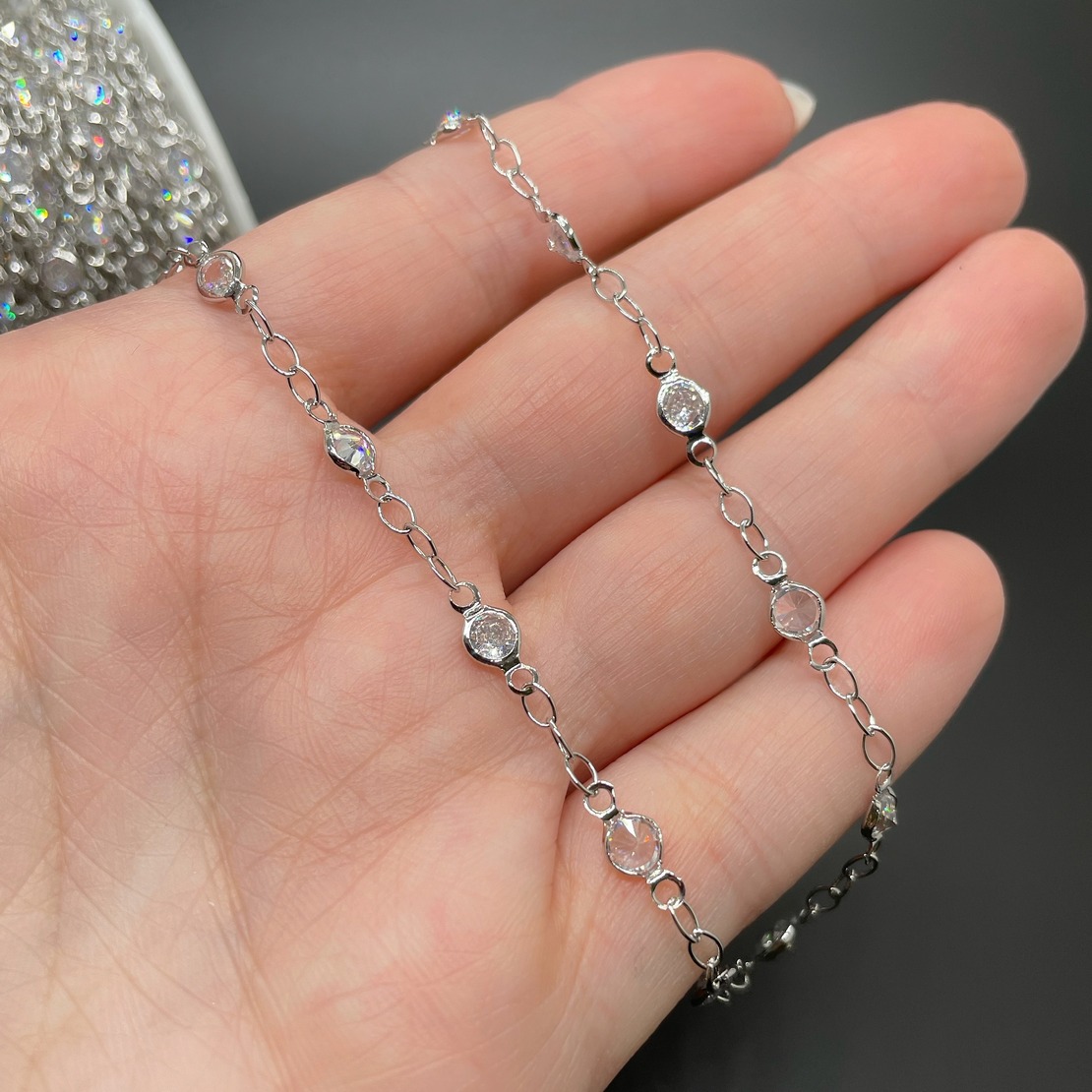 Цепь №201 цвет серебро 3х2 мм циркон