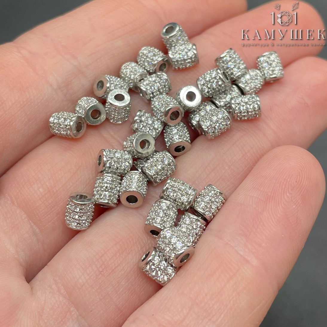 Бусина цилиндр цирконы, цвет золото 5 мм