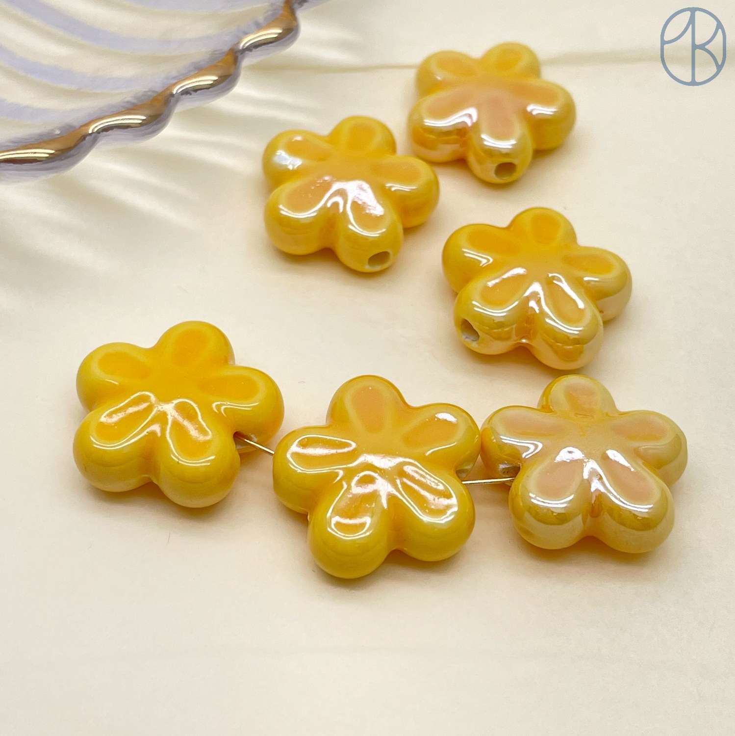 Цветок, керамика, цвет желтый 18 мм штучно