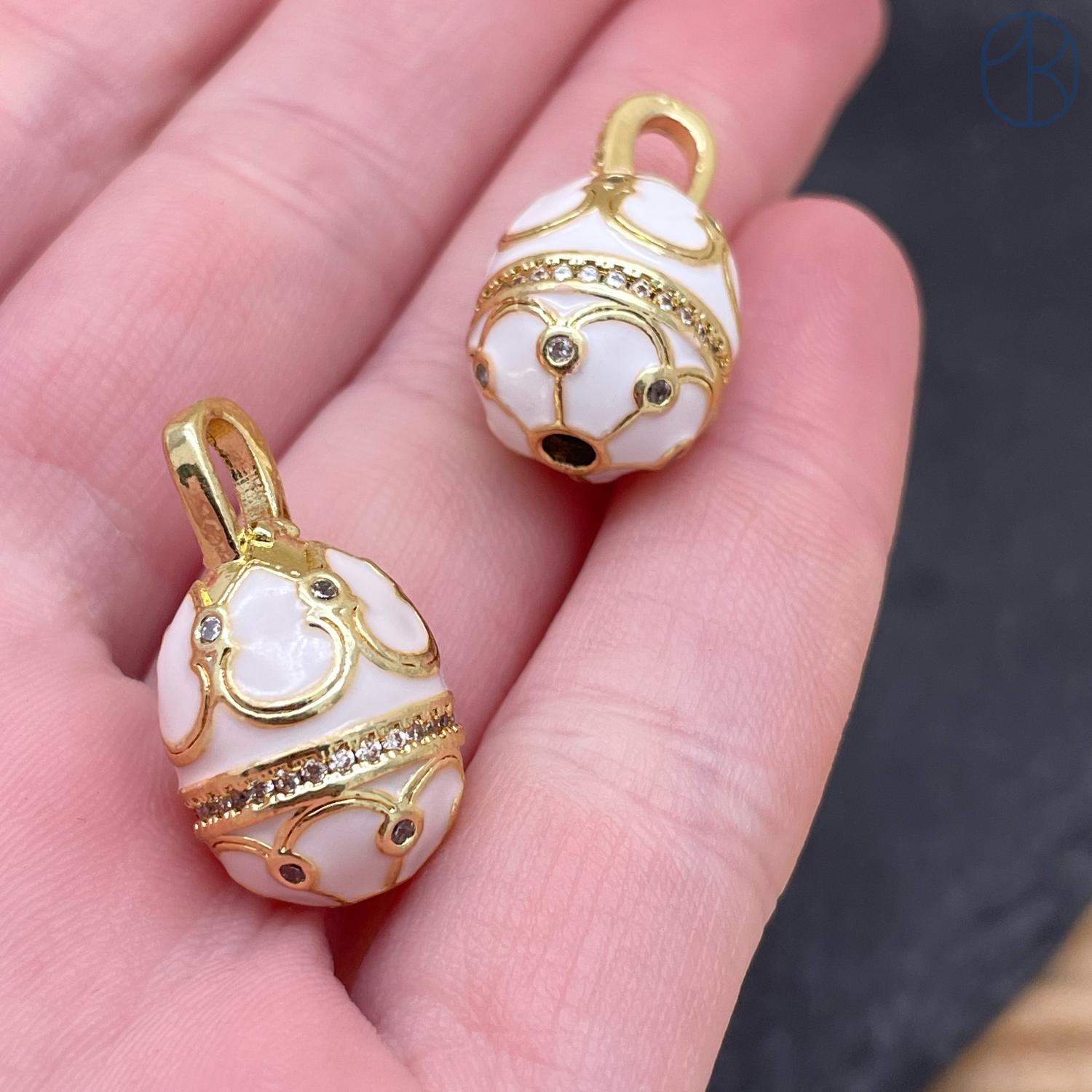Яйцо Фаберже белая эмаль, цвет золото 17х12 мм