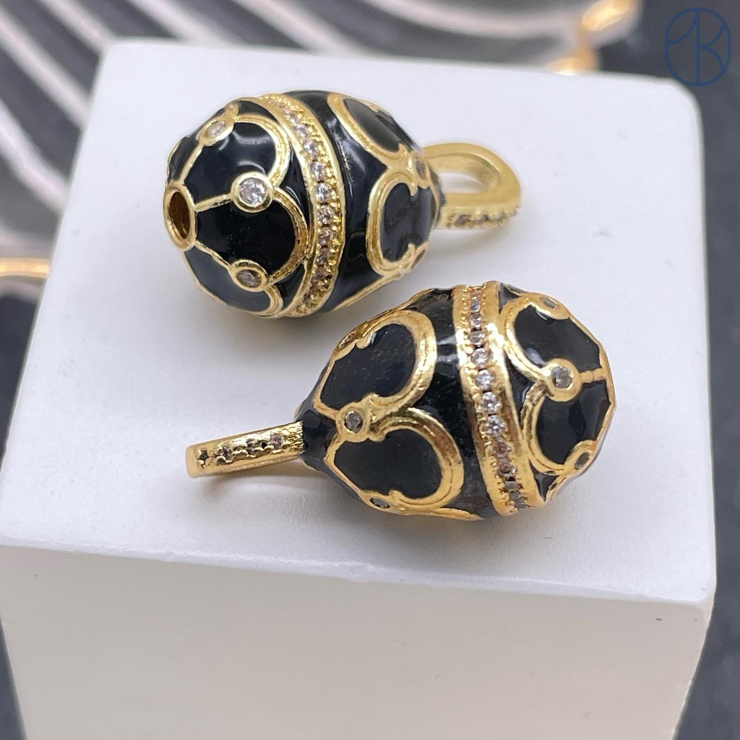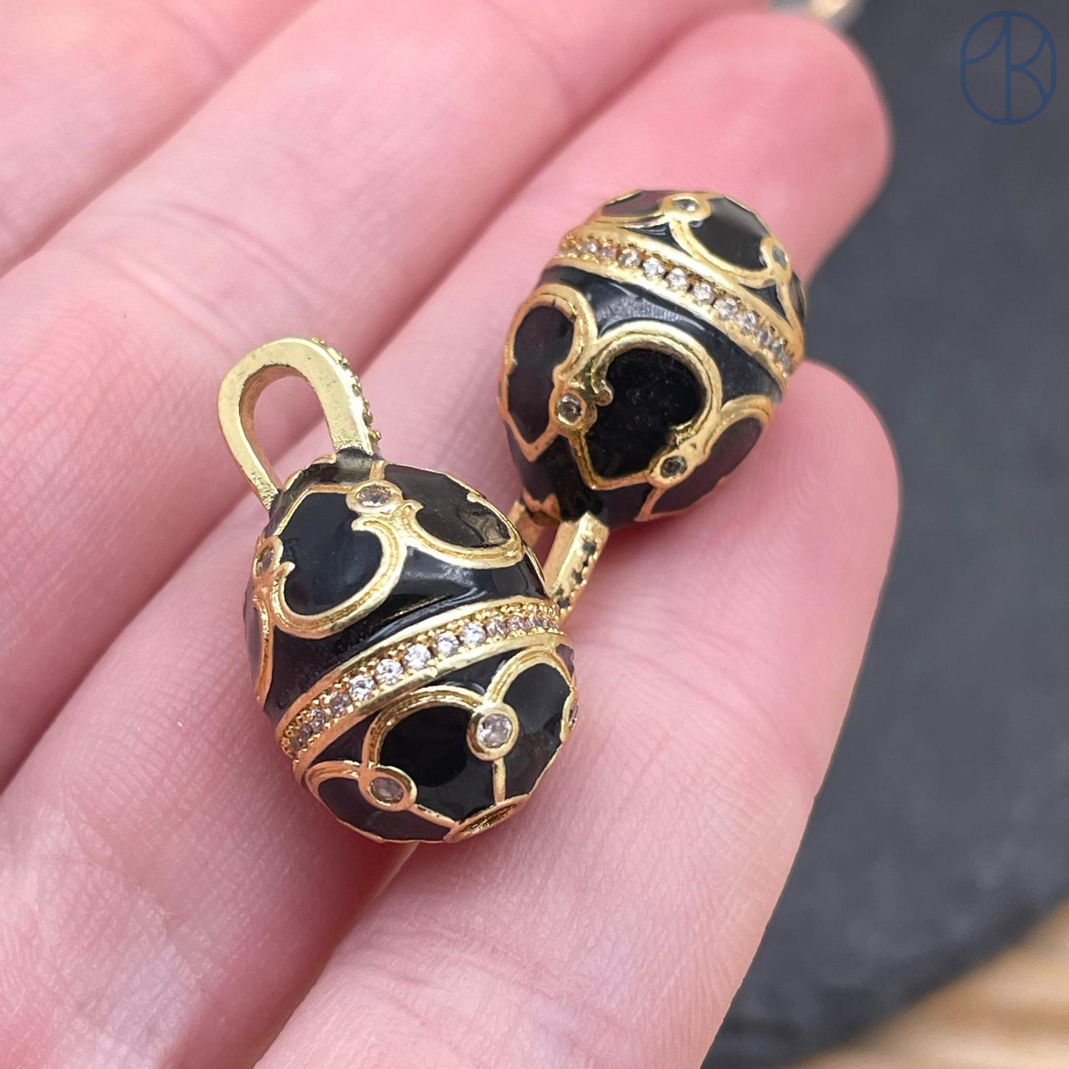 Яйцо Фаберже черная эмаль, цвет золото 17х12 мм