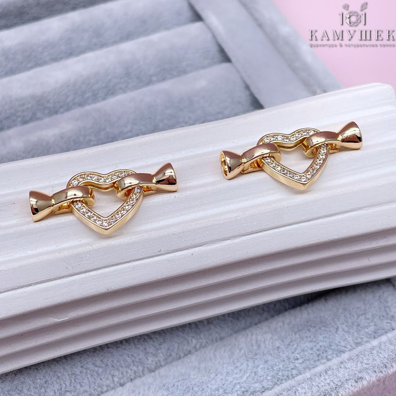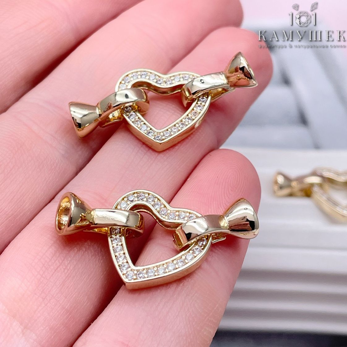 Замок-концевик сердце люкс, цвет золото 14 мм