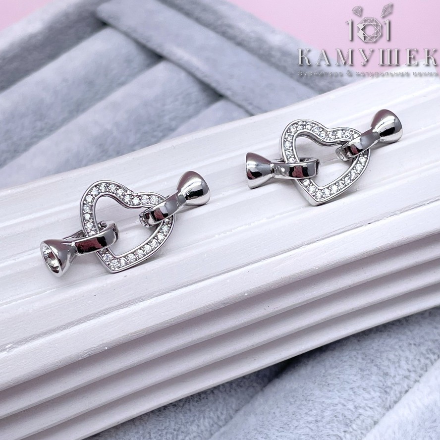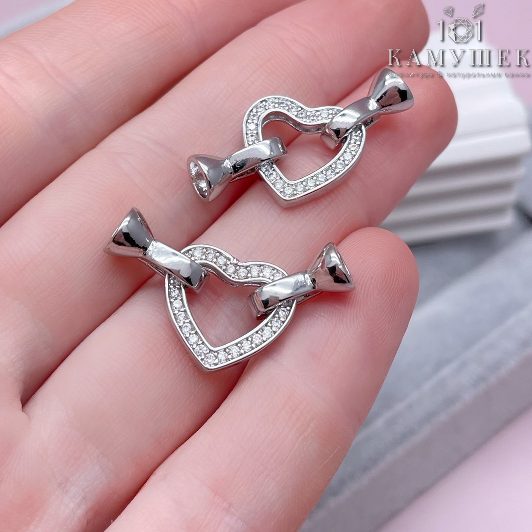 Замок-концевик сердце люкс, цвет серебро 14 мм