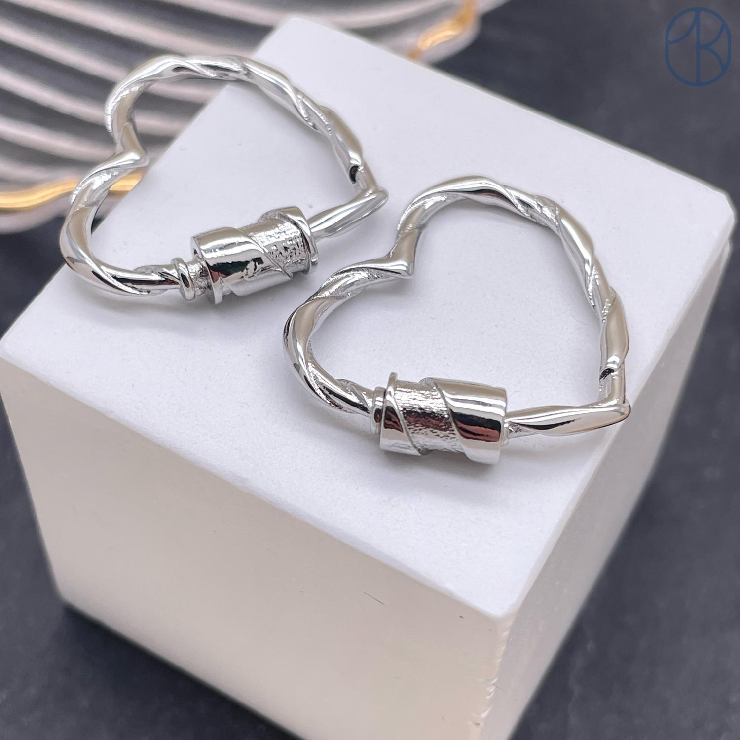 Замок винтовой сердце, цвет серебро 22х25 мм