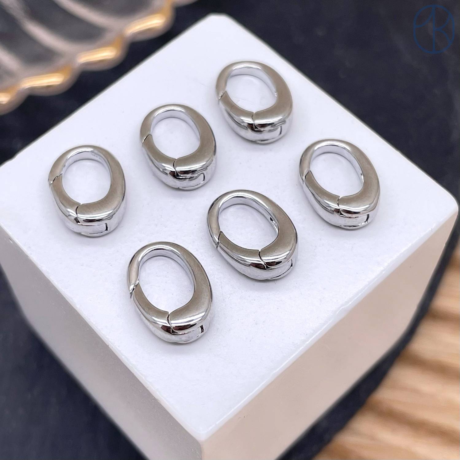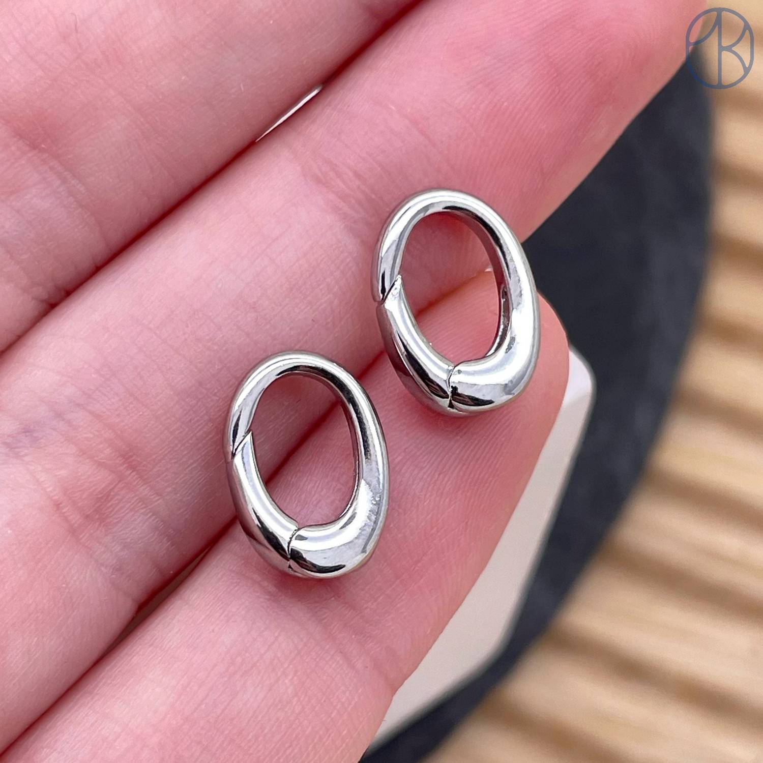 Замок карабин овал, цвет серебро 12 мм