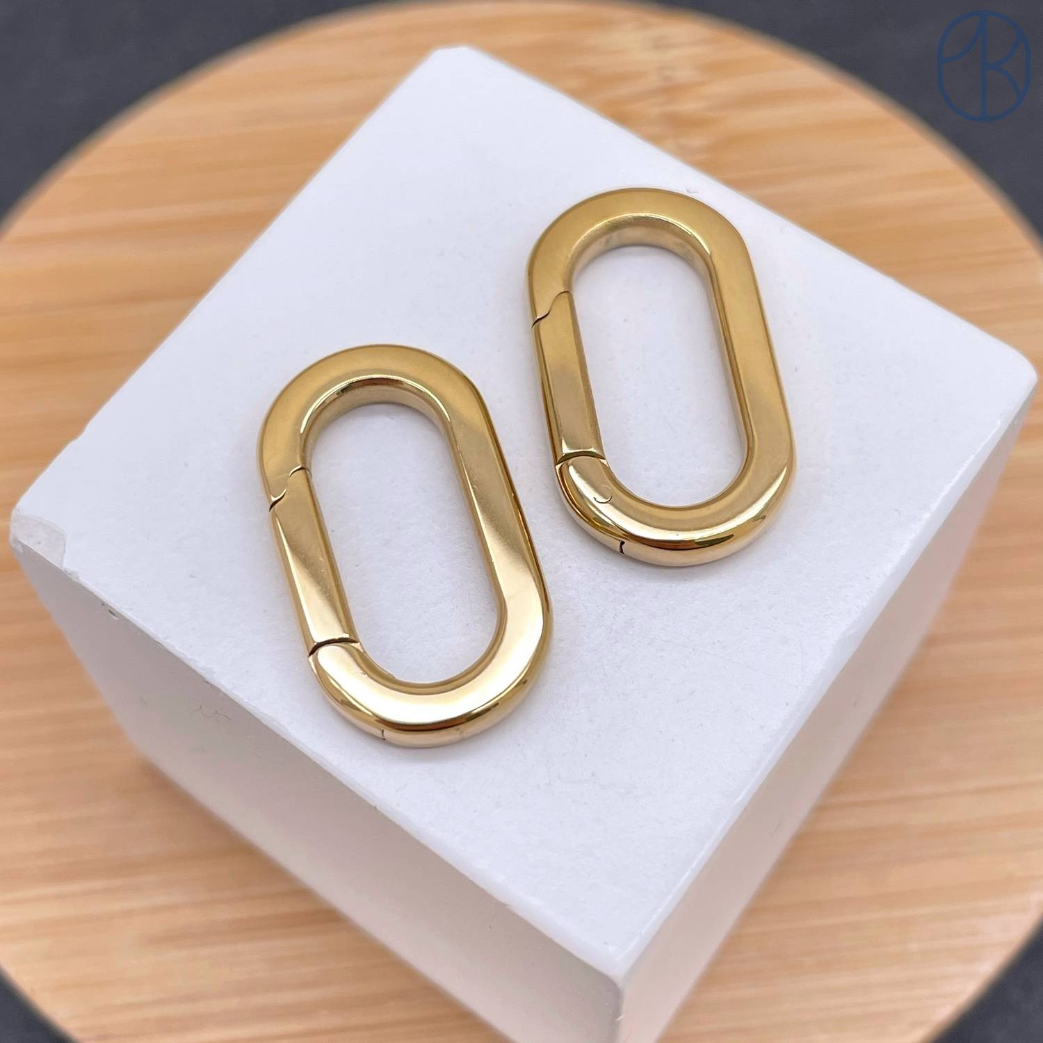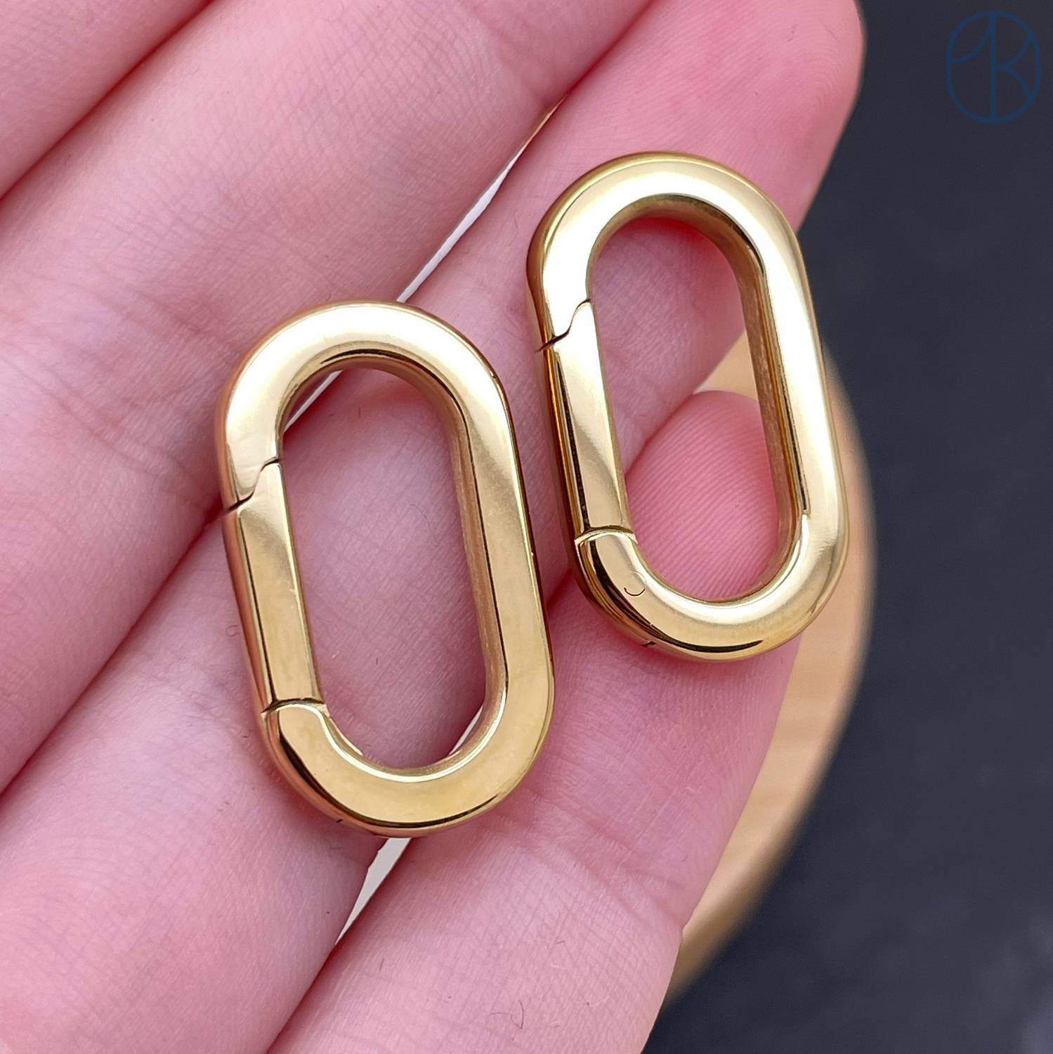 Замок карабин сталь, цвет золото 18К 22х12 мм