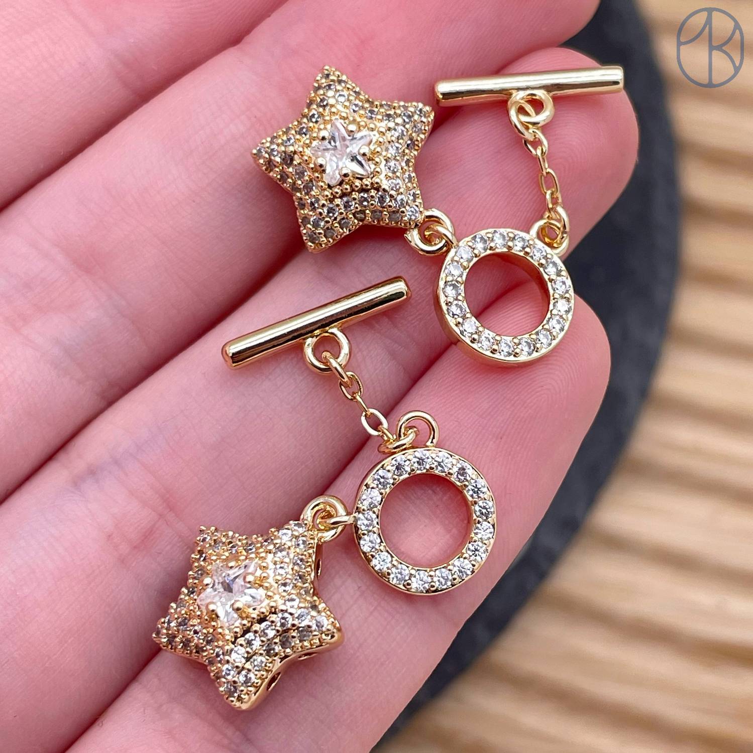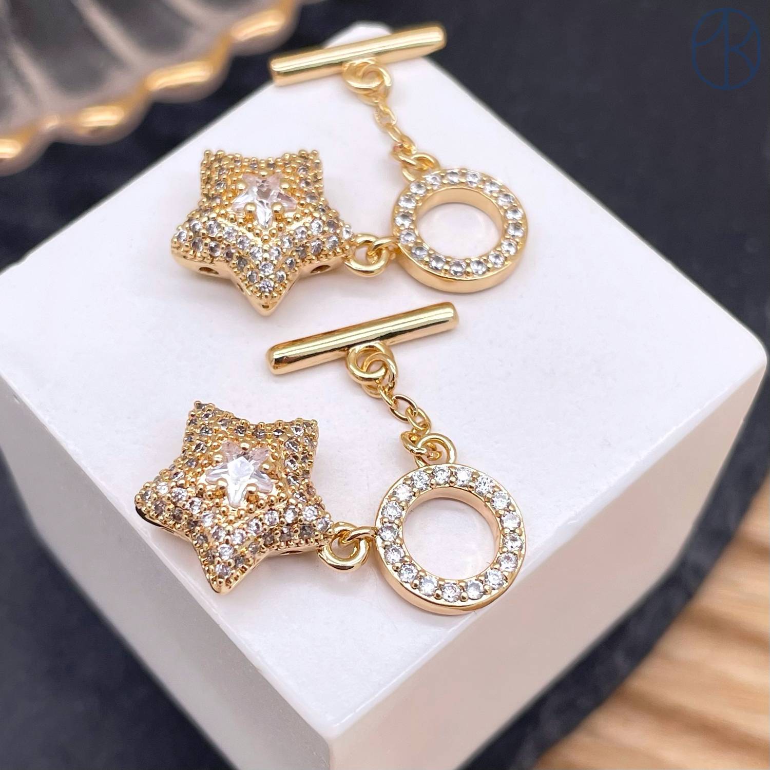 Замок тогл с подвеской звезда цирконы, цвет золото 12 мм