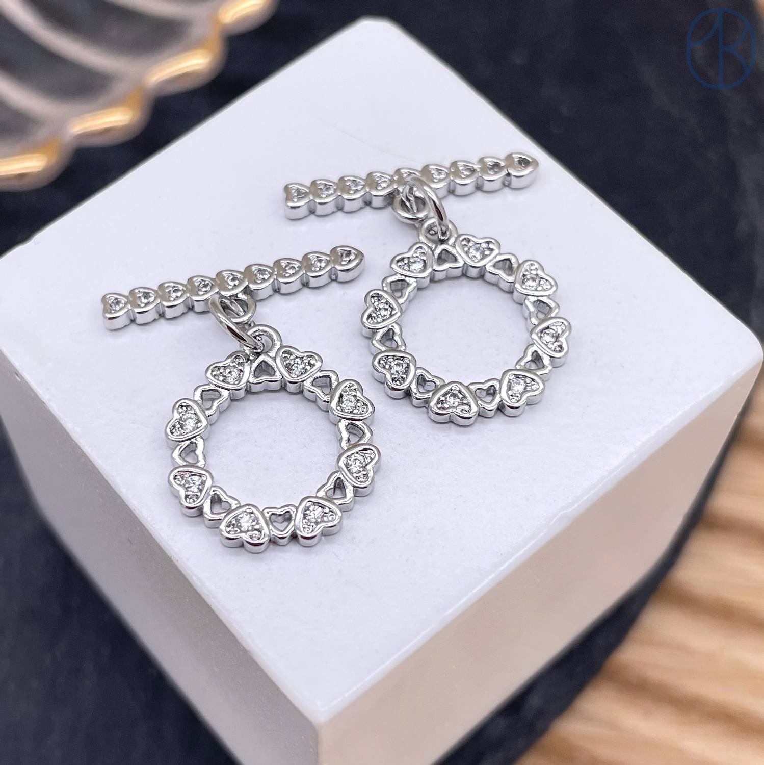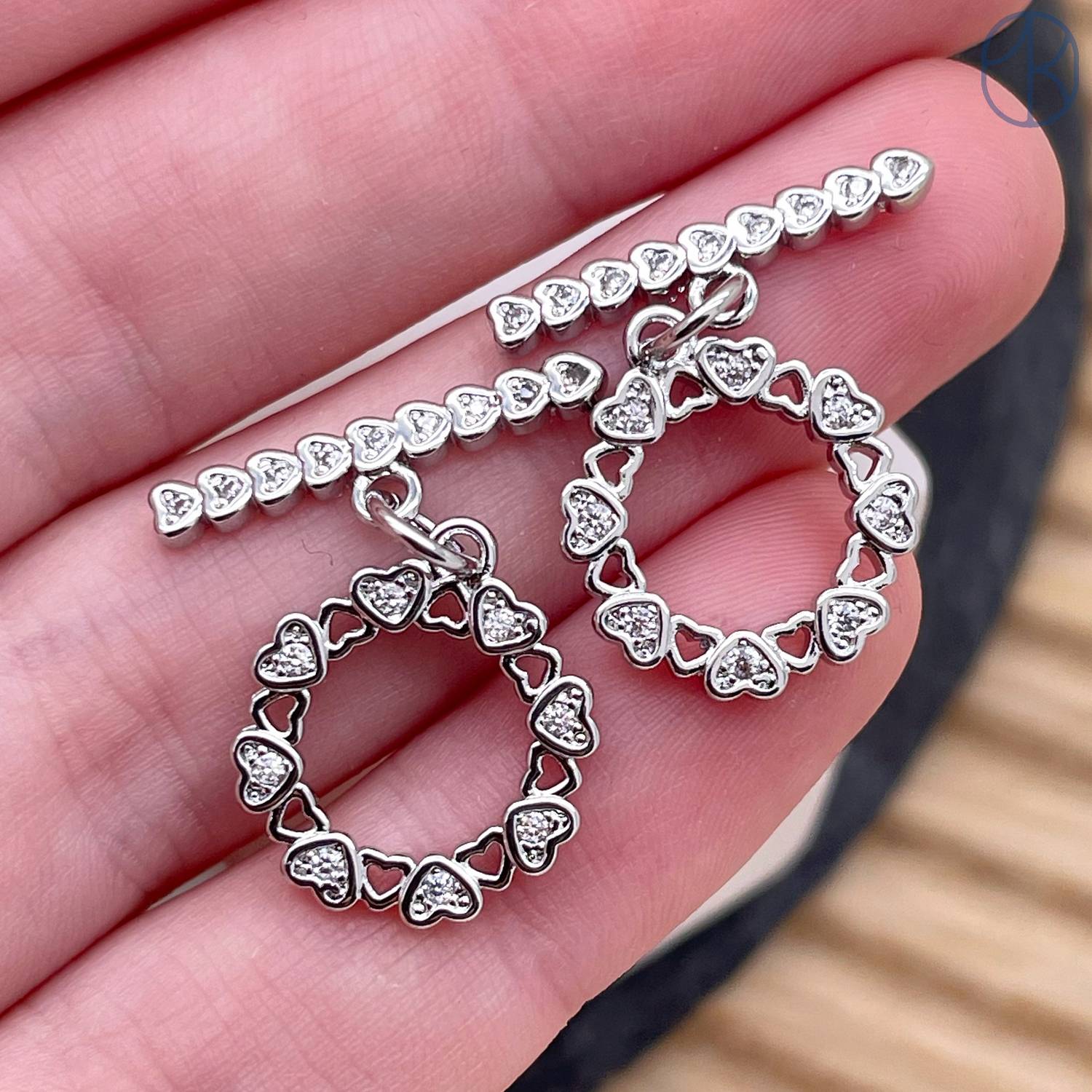 Замок тогл сердца цирконы, цвет серебро 14 мм