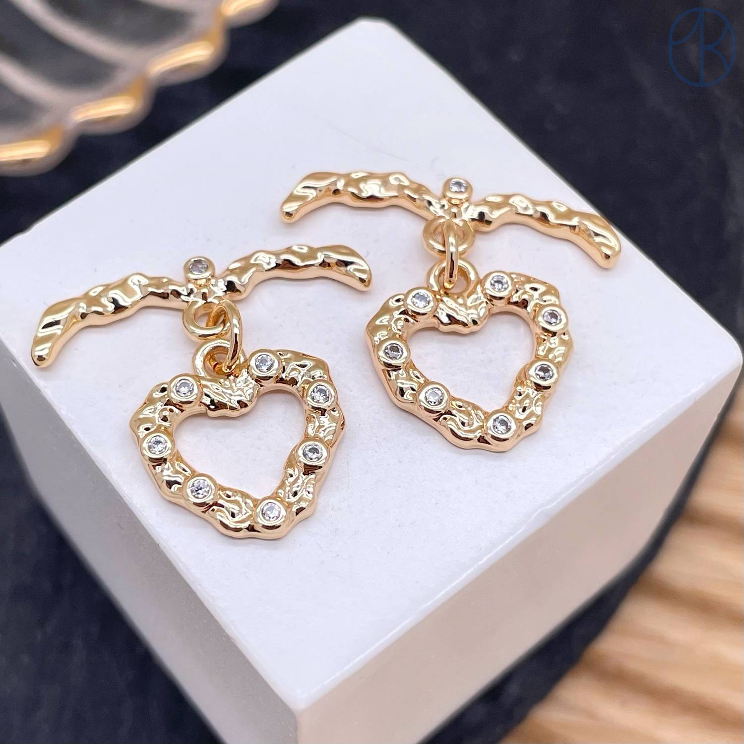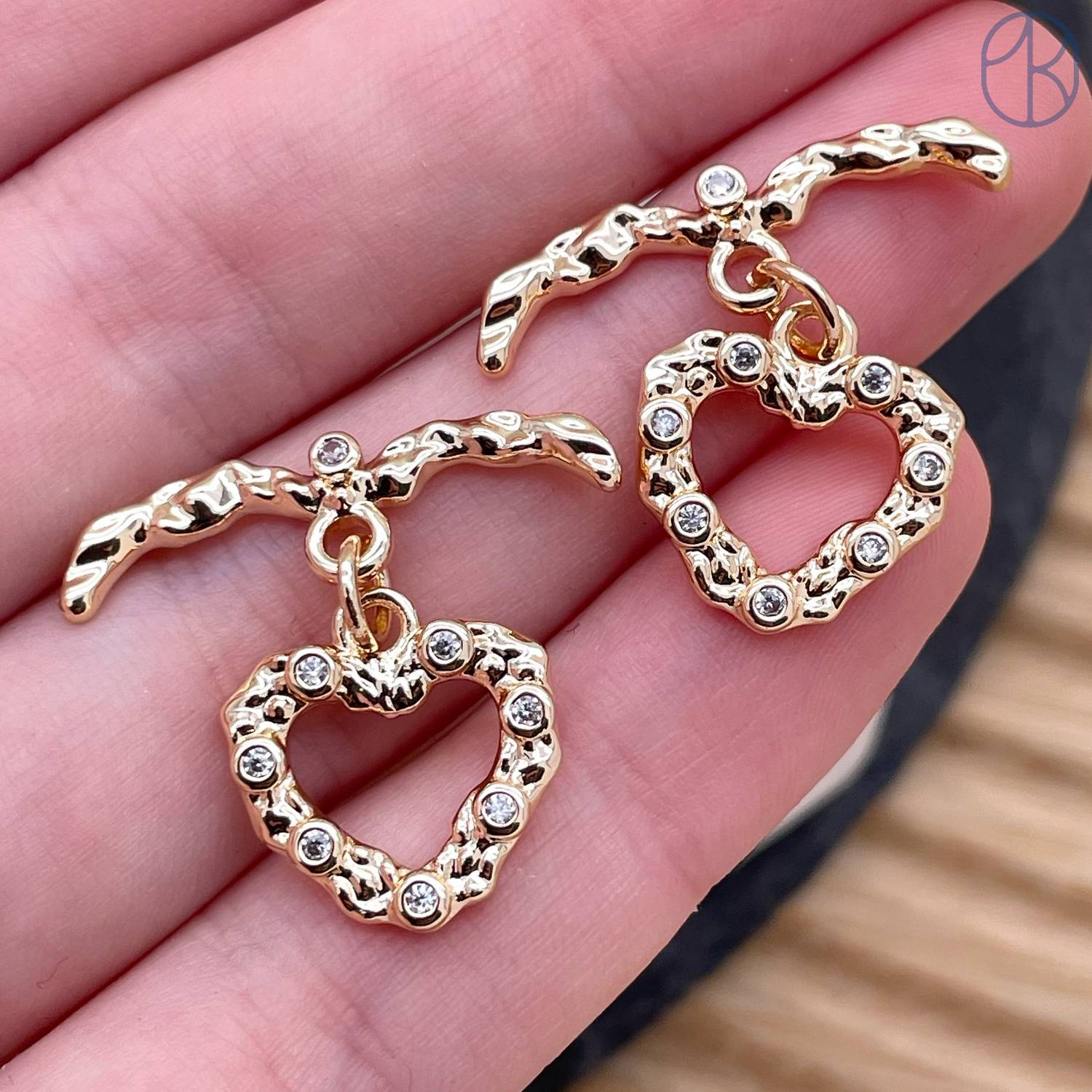 Замок тогл сердце цирконы, цвет золото 14 мм