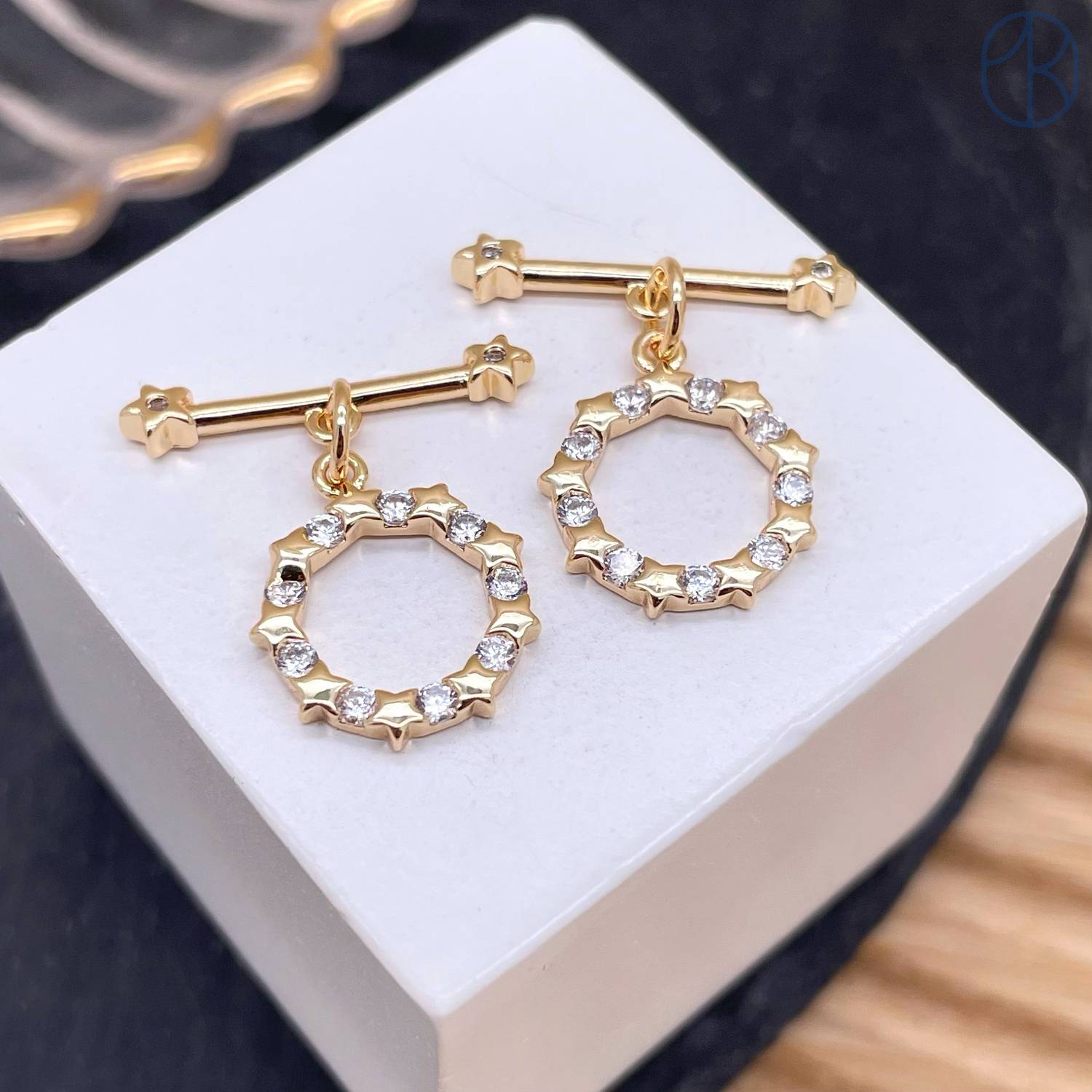 Замок тогл цирконы, цвет золото 12 мм