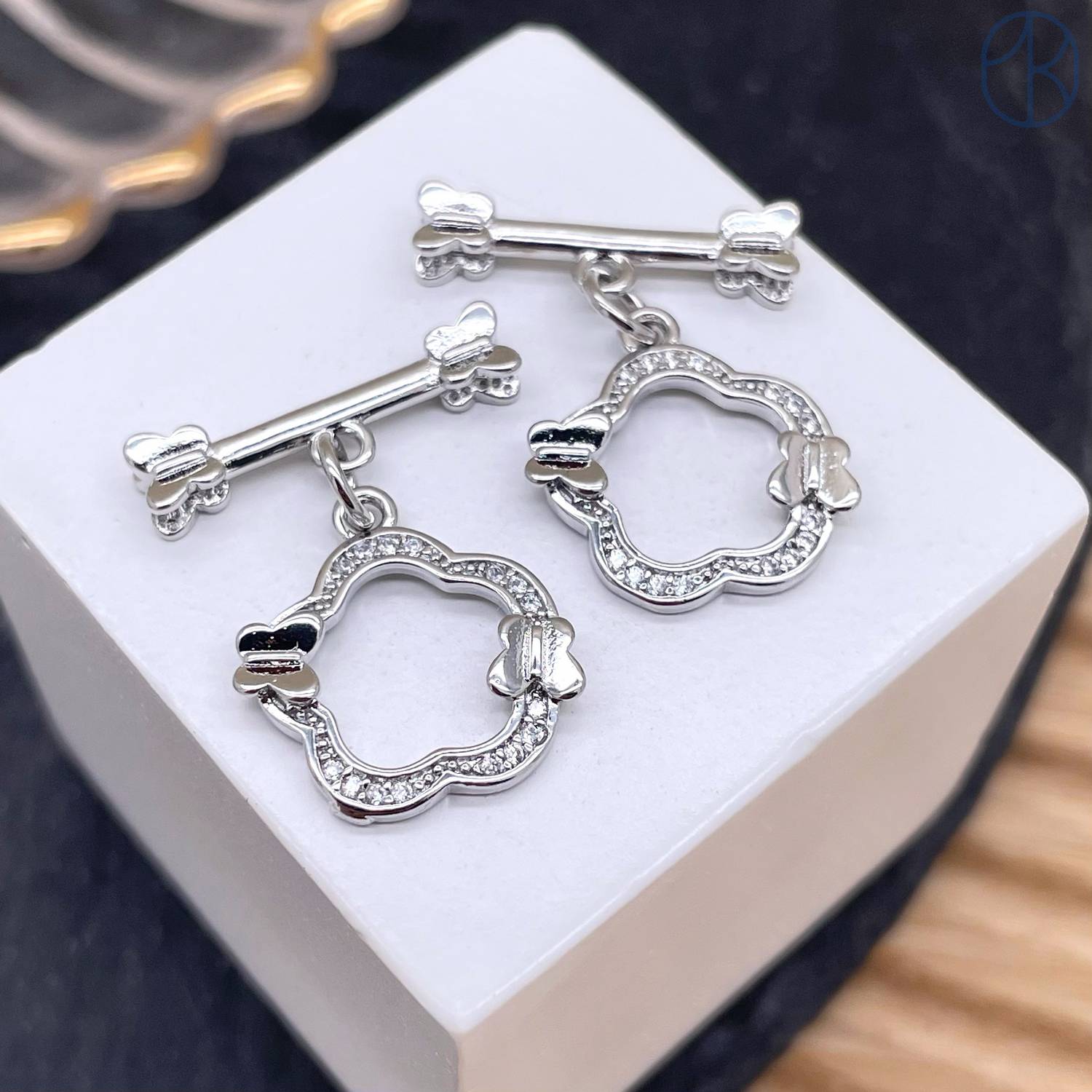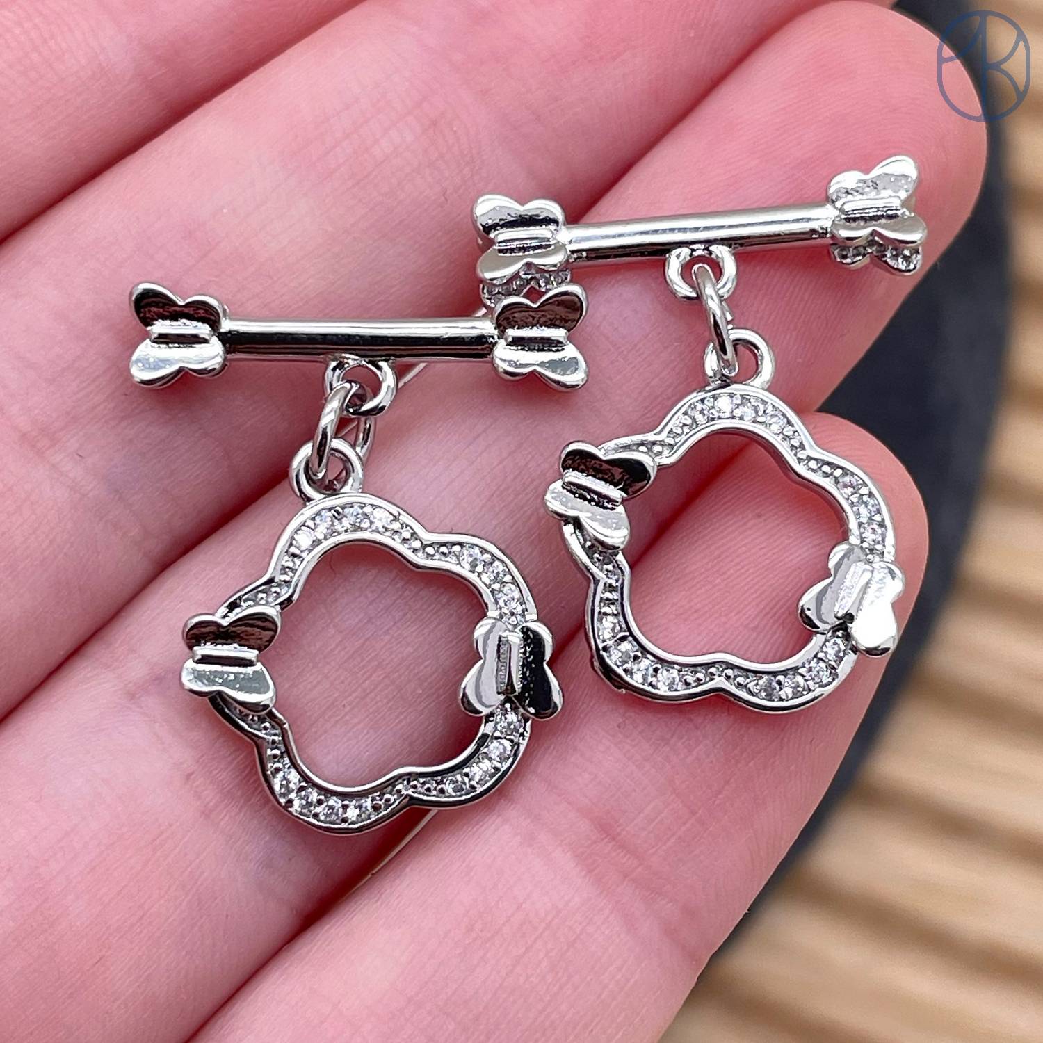 Замок тогл цветок и бабочки цирконы, цвет серебро 18 мм