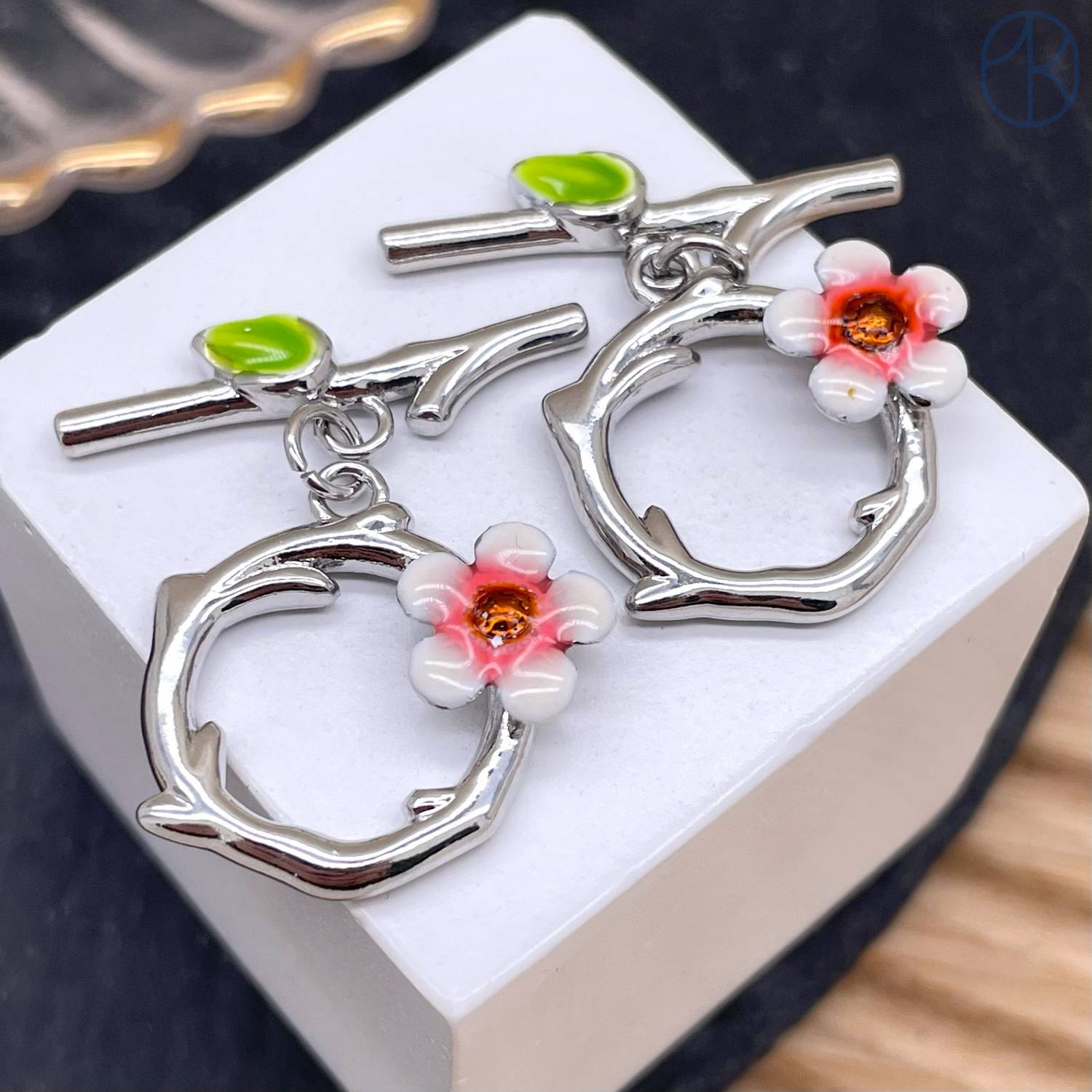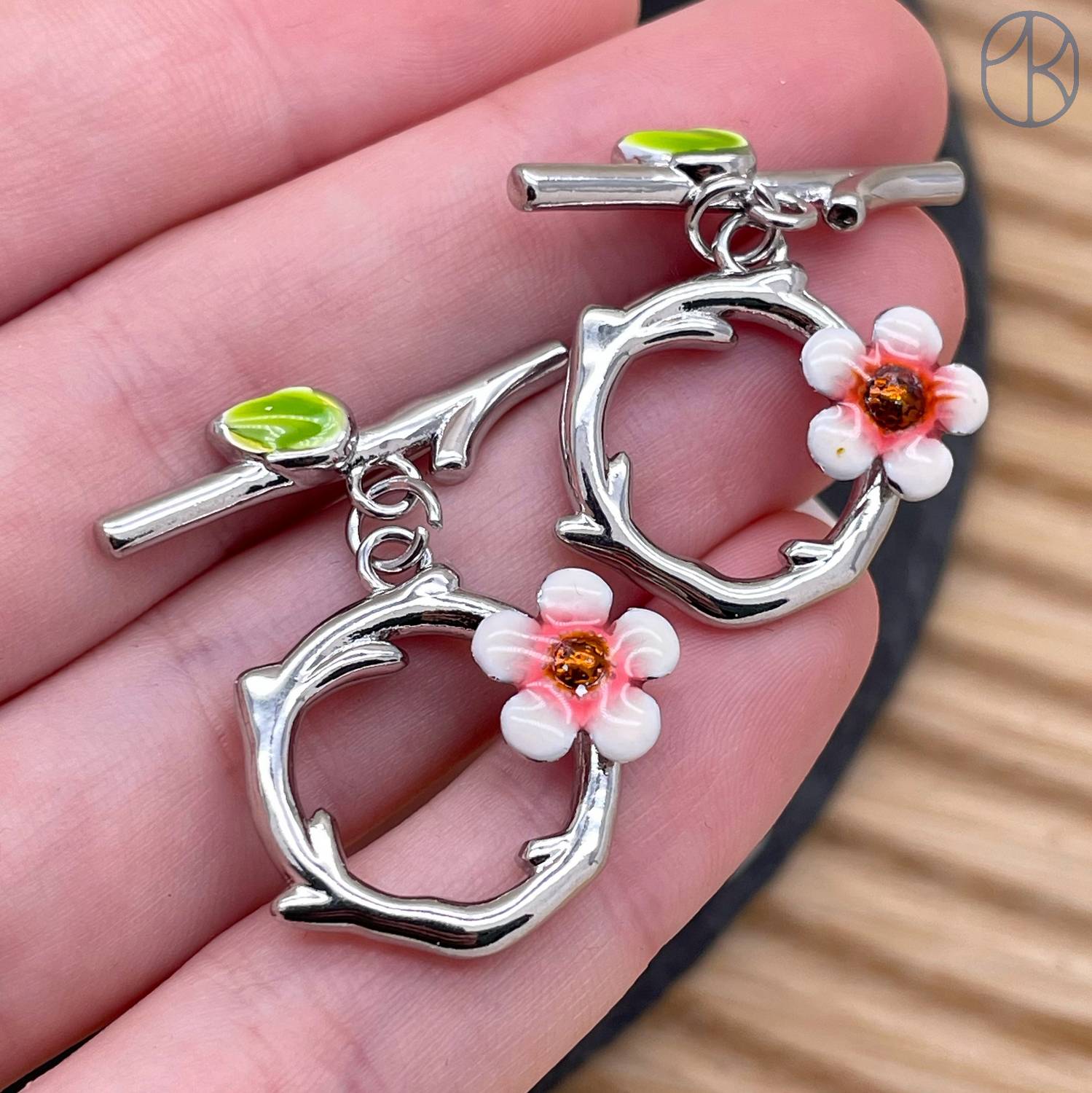 Замок тогл цветок цирконы, цвет серебро 22 мм